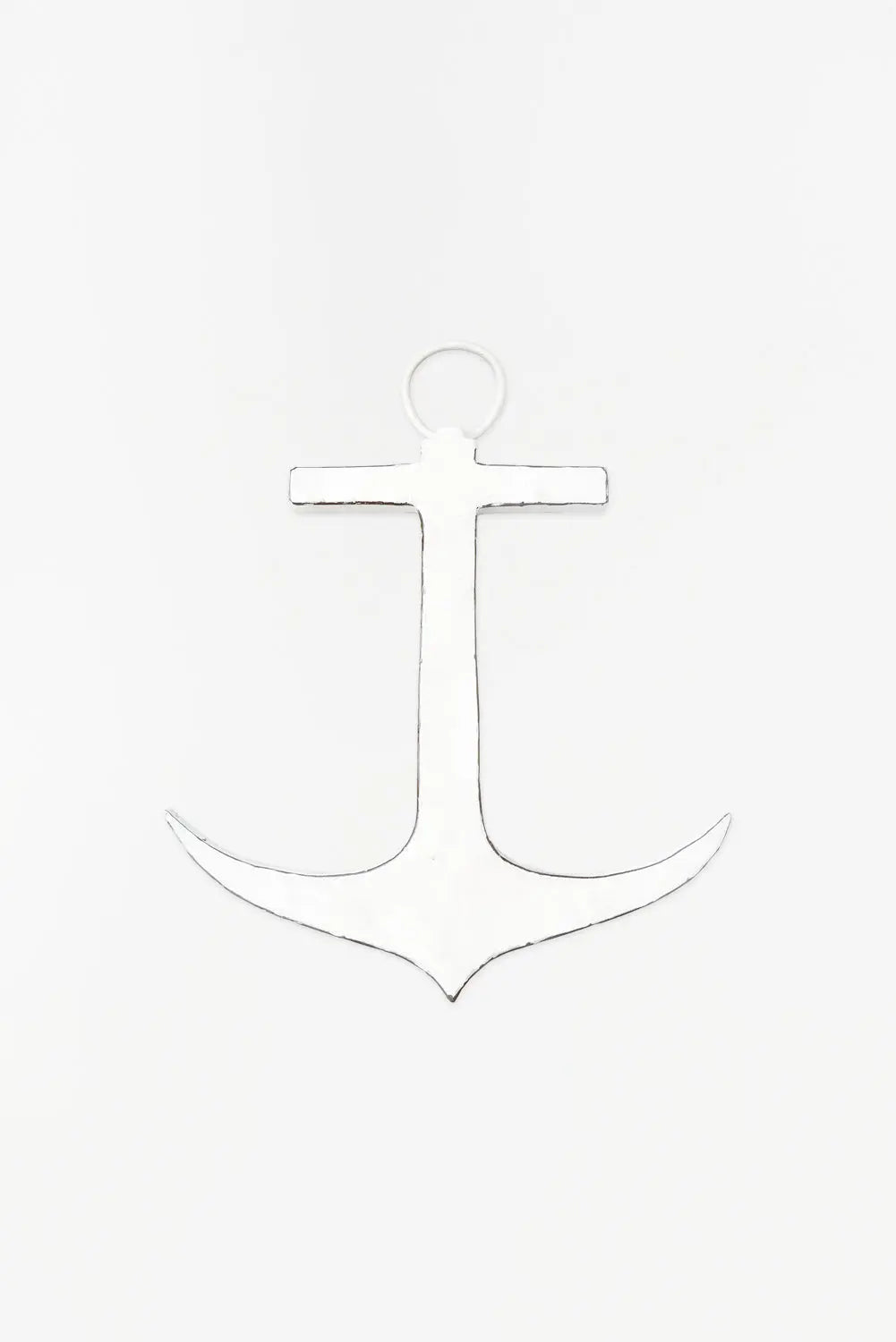 Ancla pequeño de metal reciclado de color blanco para darle un toque de estilo marino a tu hogar o negocio. 34 x 39 cm. Dimensiones: l: 34 cm – h: 39,5 cm.
