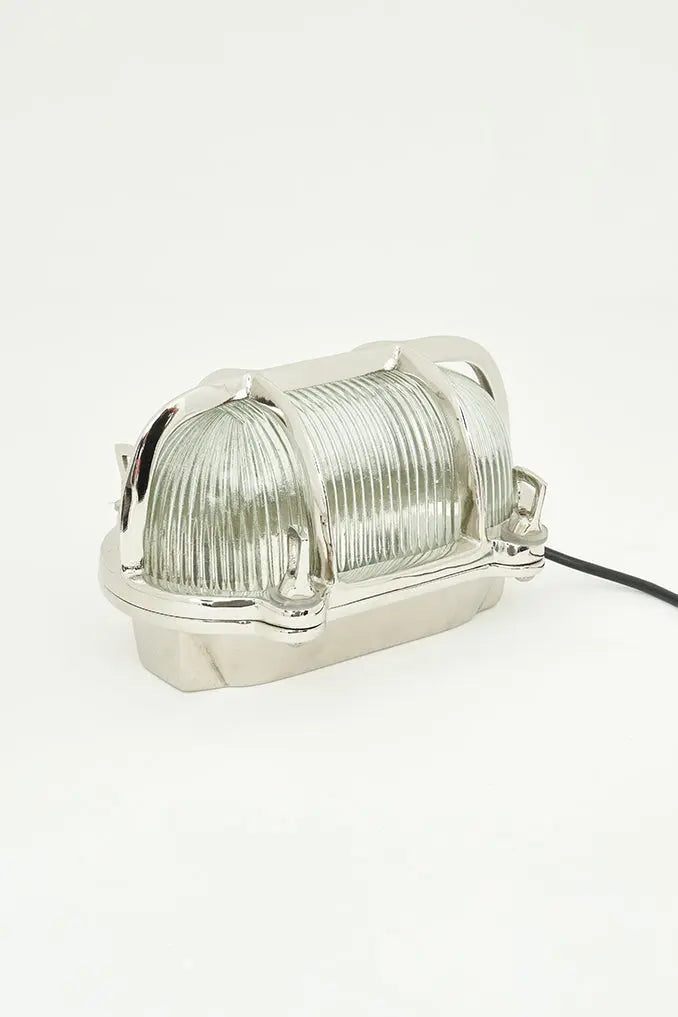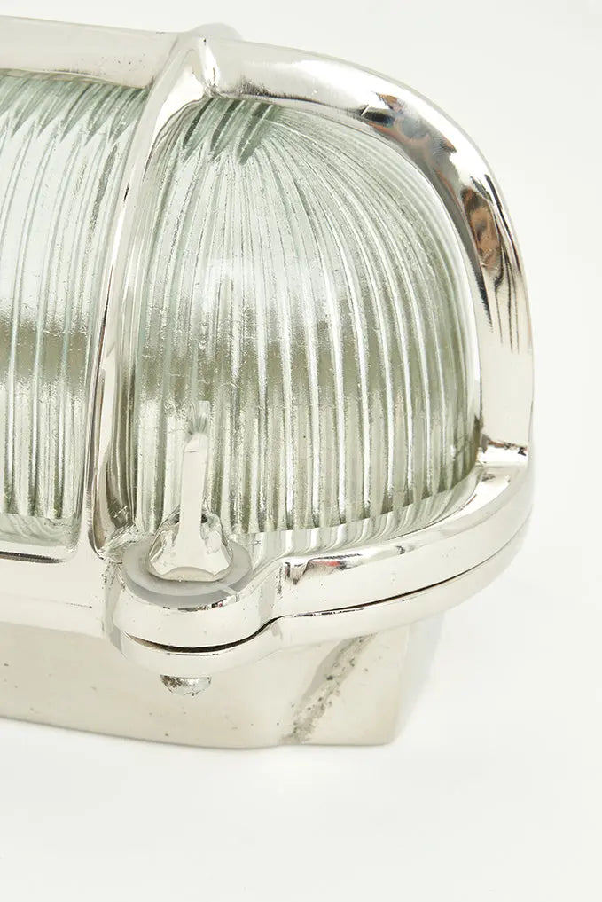 Aplique vintage de aluminio en forma ovalada para pared: estilo náutico con toque retro añade un encanto nostálgico y un toque náutico a tu espacio con nuestro aplique vintage de aluminio en forma ovalada para pared. Este elegante accesorio no solo ilumina tu entorno, sino que también evoca la estética clásica y atemporal de las farolas vintage. Dimensiones: l: 22 cm – h: 14 cm.