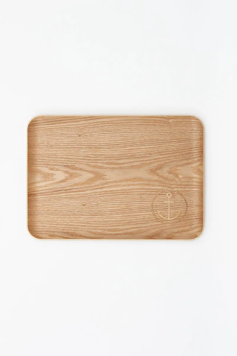 Bandeja de bambú funcional y resistente. Lleva un grabado de un ancla rodeada de un cabo en uno de los extremos. Tamaño mediano hay otros dos tamaños. Dimensiones: l: 34 cm – w: 25 cm – h: 2 cm.