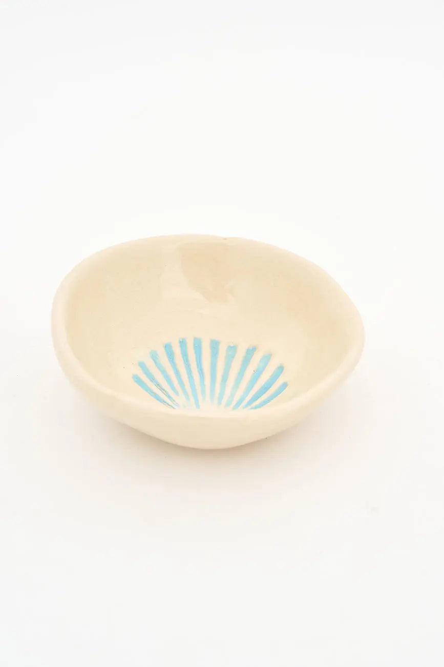 Bol de gres con detalle de una concha en el cuenco. Precioso bol de gres con una concha pintada con un acabado envejecido en el cuenco. Una forma discreta y bonita de aportar un toque marinero al hogar empezando desde la cocina. Dimensiones: h: 4,5 cm – ø: 12 cm.