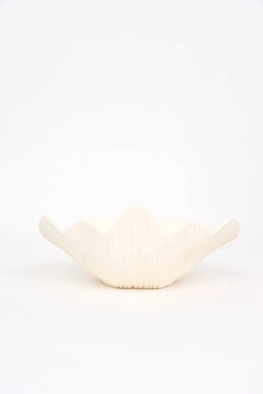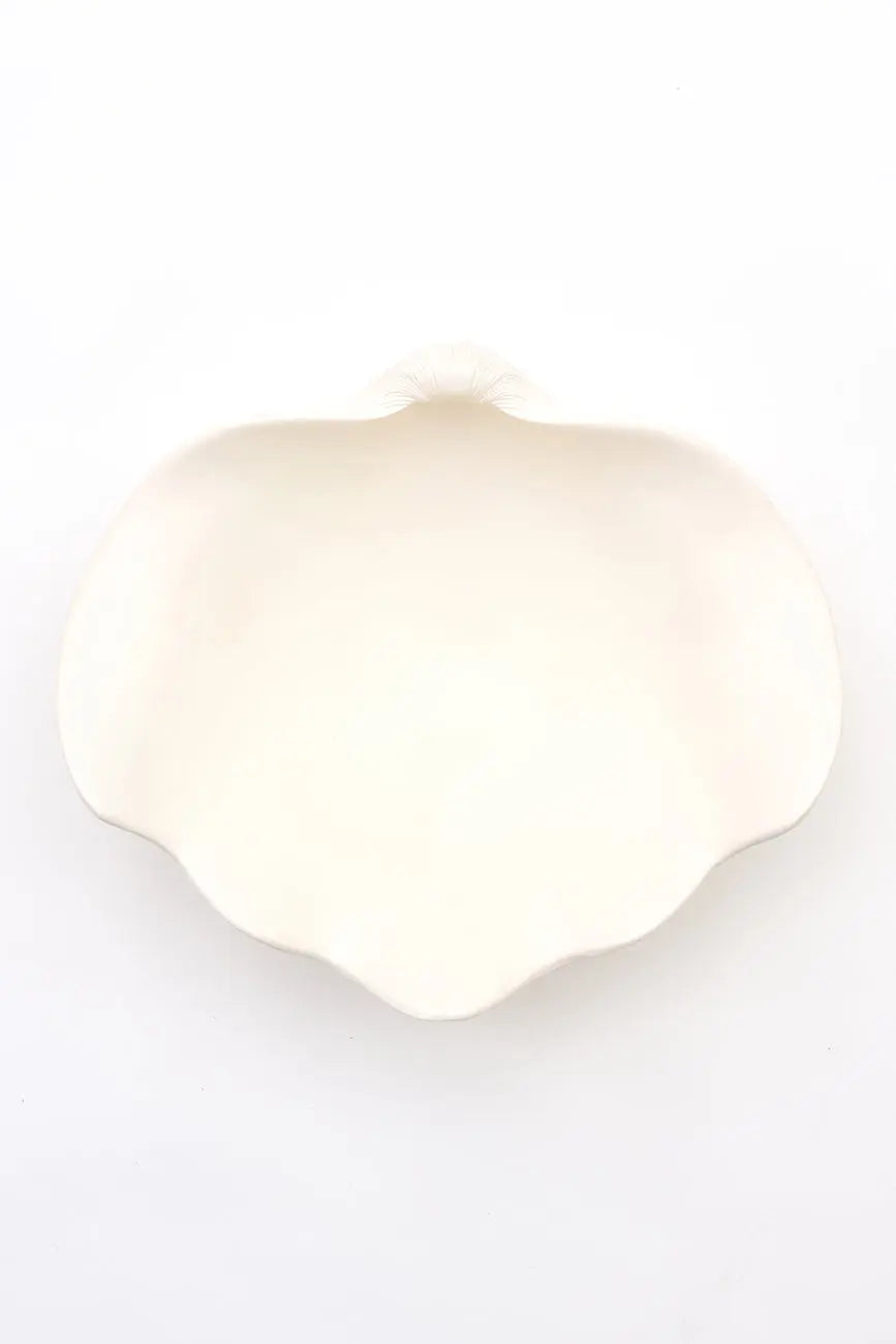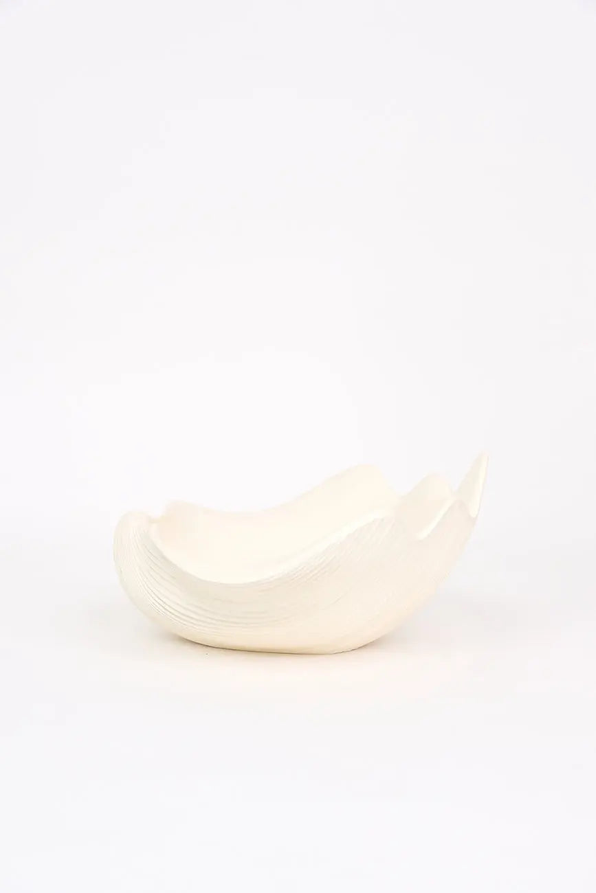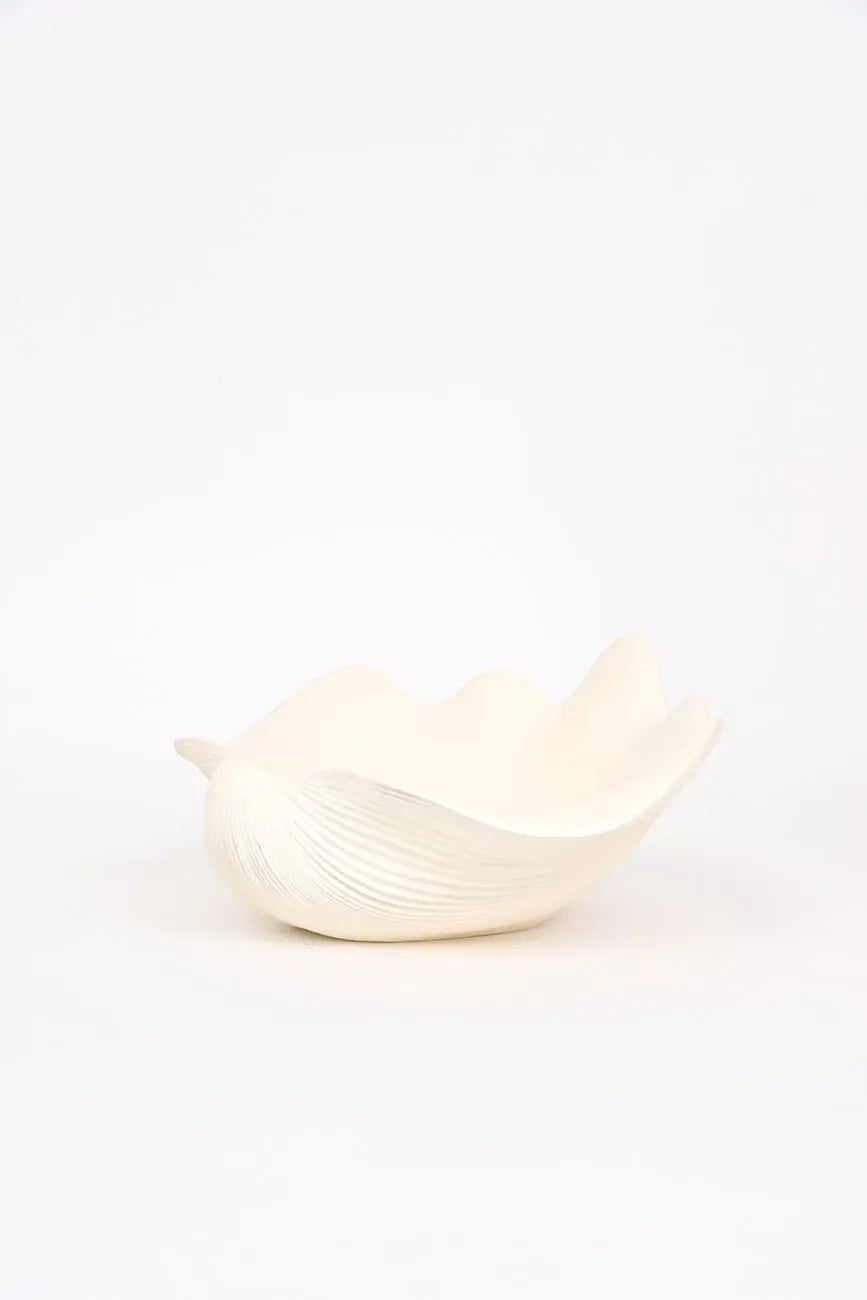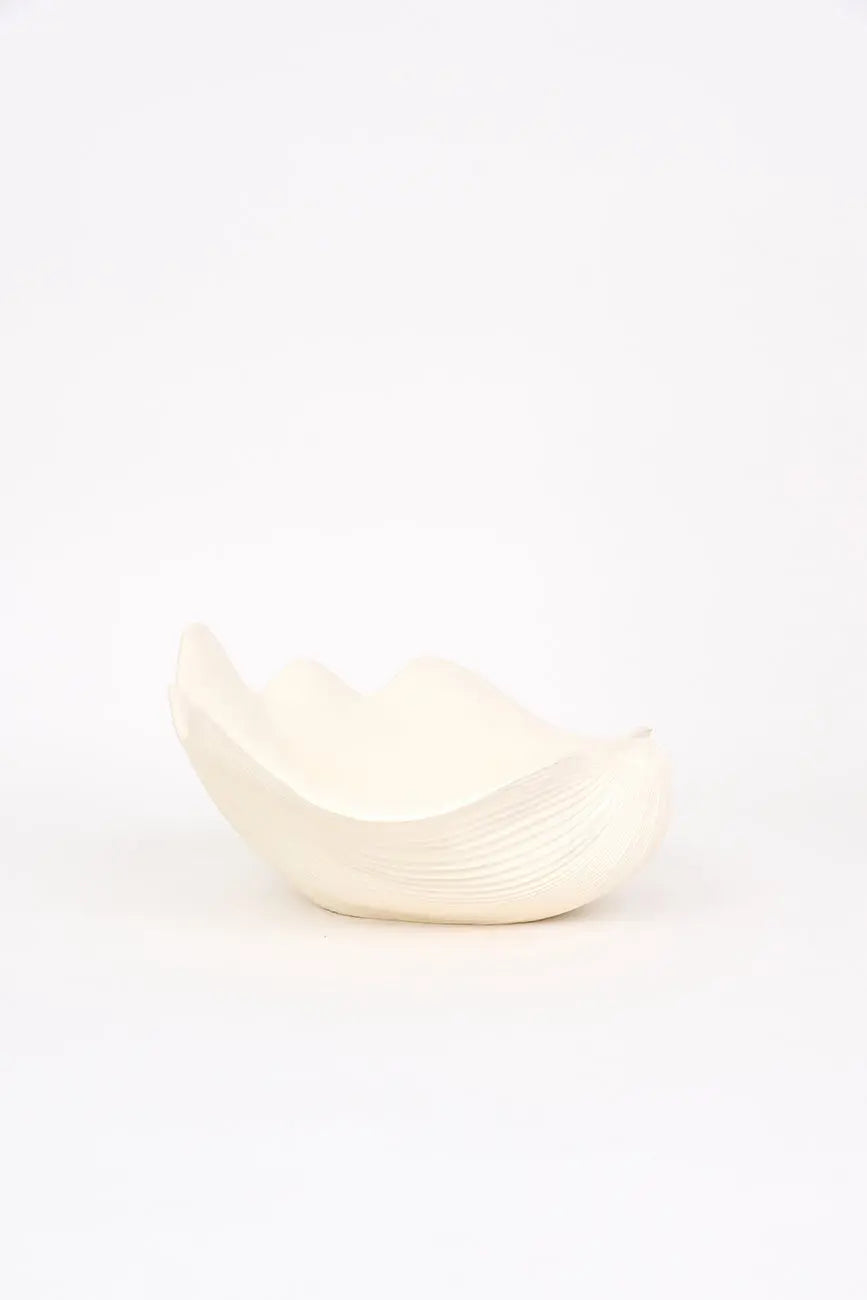 Bol grande fabricado en resina con forma de concha, una pieza versátil y decorativa que aporta un toque costero a cualquier espacio. Ideal para varios usos, este bol tiene un diseño único que imita la forma de una concha marina, perfecto para servir alimentos, como centro de mesa o para almacenar objetos pequeños. Dimensiones: l: 40 cm – w: 46 cm – h: 23 cm.