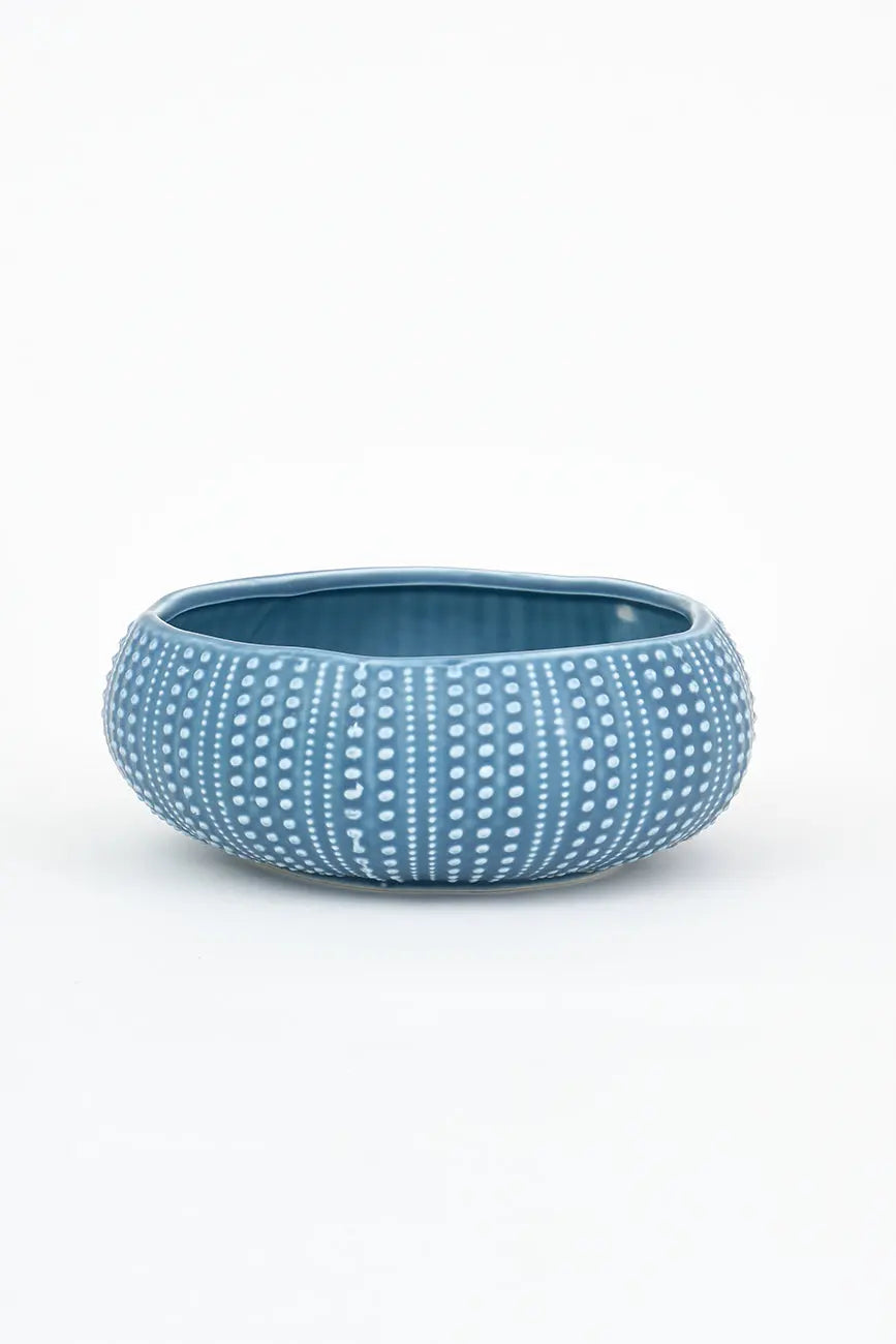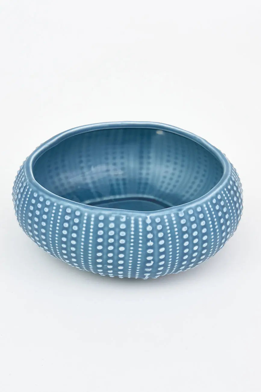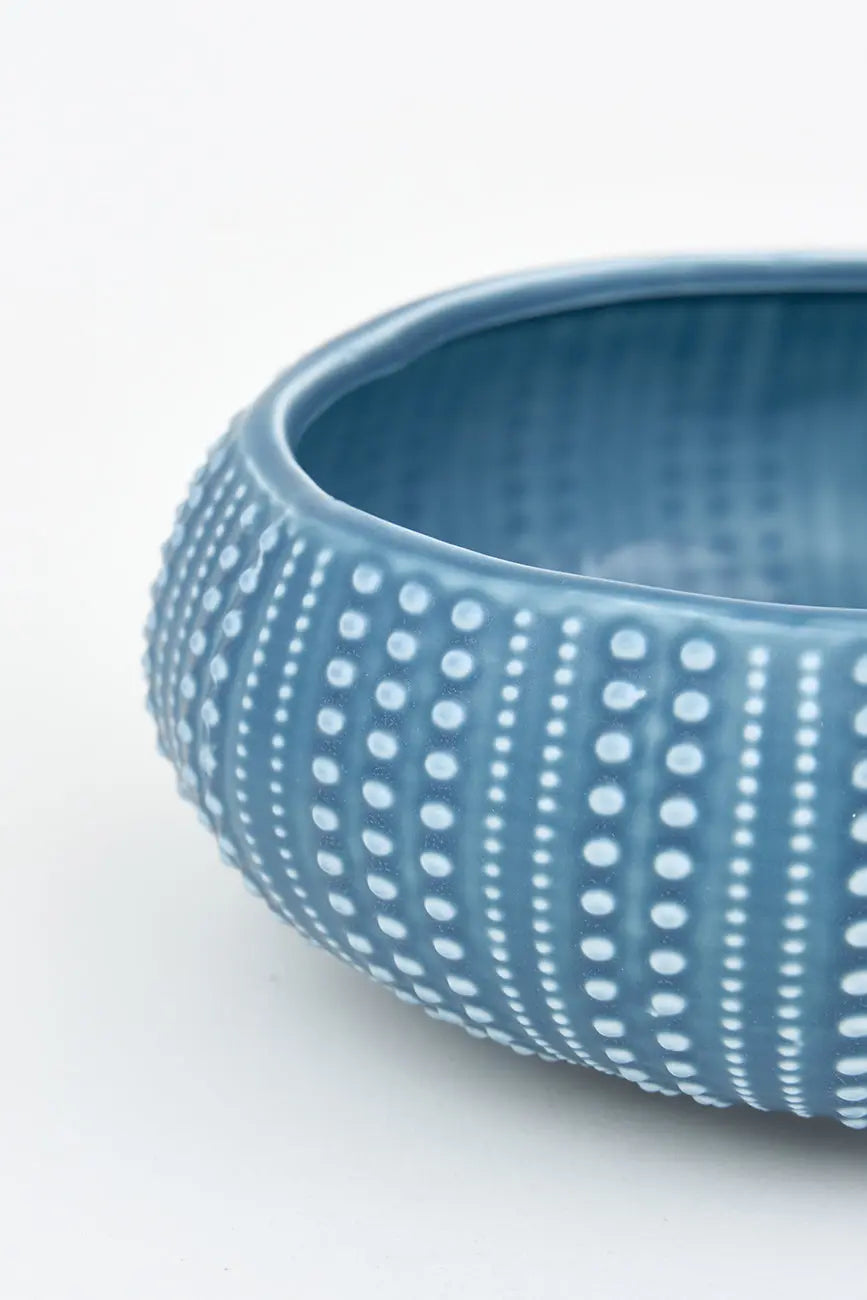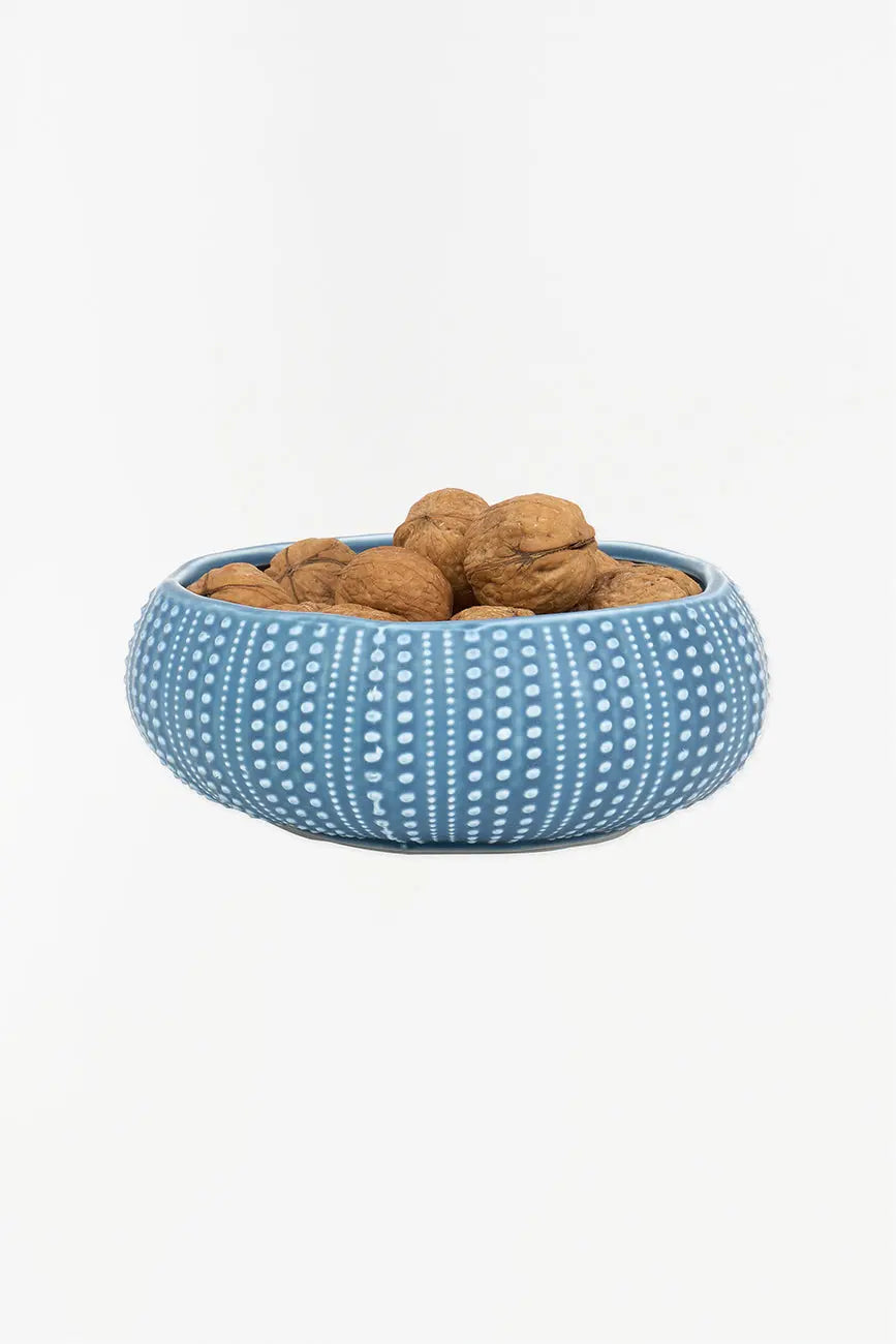 Este bol en forma de erizo de mar, hecho de cerámica, es una pieza funcional que también actúa como un encantador elemento decorativo en tu hogar. Su diseño náutico y divertido lo convierte en el lugar ideal para almacenar frutos secos, pequeñas piezas de juego o incluso a modo de centro de mesa. Dimensiones: h: 7 cm – ø: 18,5 cm.