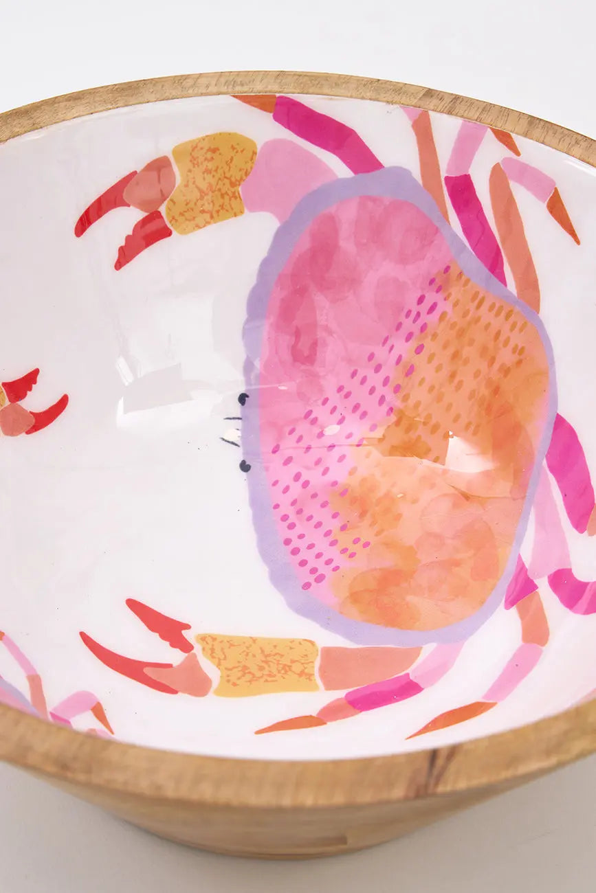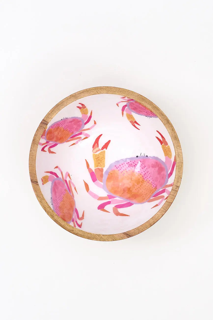 Este bol de madera esmaltada grande con cangrejos es una pieza única que añade un toque de diseño náutico a tu mesa o decoración. Hecho a mano con madera de alta calidad y esmaltado para un acabado brillante. Dimensiones: h: 9,5 cm – ø: 24 cm.