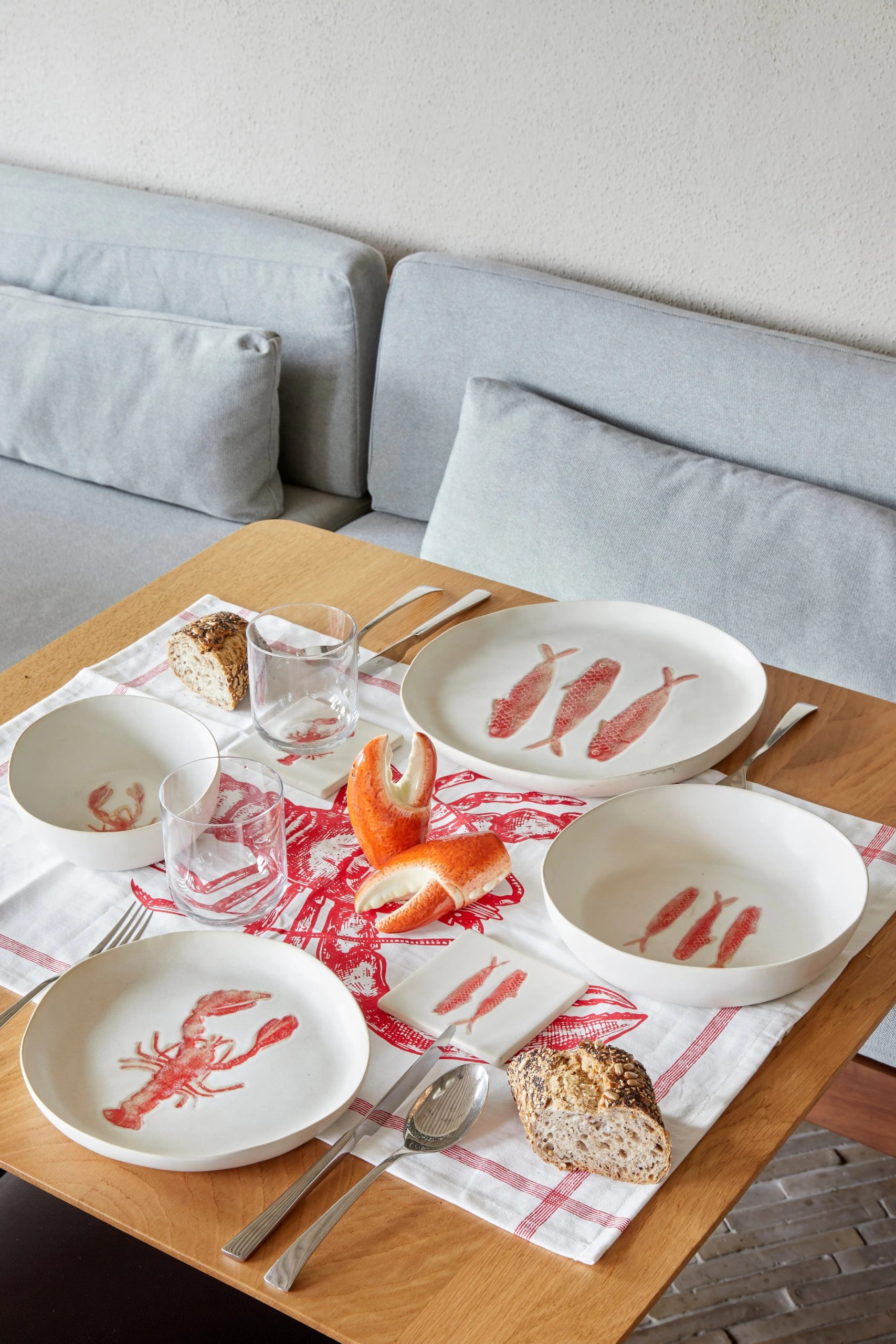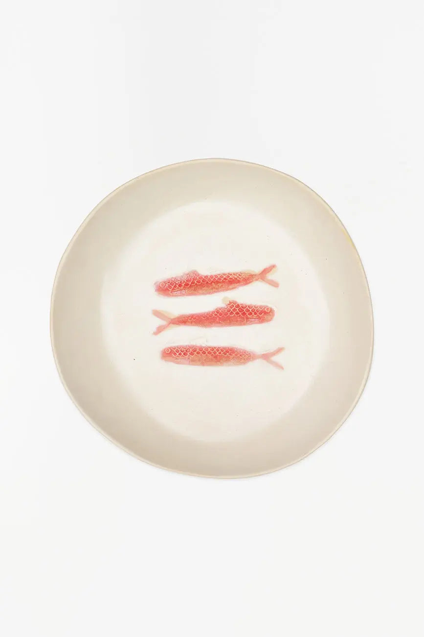 Bol bajo con peces, fabricado en cerámica de alta calidad, ideal para quienes buscan un toque náutico en su vajilla. Este bol presenta un diseño encantador con motivos de peces, perfecto para servir ensaladas, aperitivos o como pieza decorativa en la mesa. Dimensiones: h: 5 cm – ø: 22 cm.