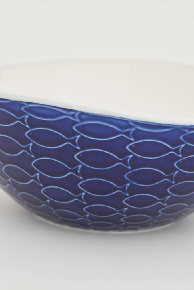 Bol de cerámica grande azul y blanco con peces en relieve: una pieza única añade un toque distintivo a tu mesa con nuestro bol de cerámica grande en azul y blanco con peces en relieve. Cada detalle está cuidadosamente elaborado para crear una pieza única. Este bol no solo es funcional, sino que también es una pieza que realza la presentación de tus platos. Dimensiones: h: 8 cm – ø: 20 cm.