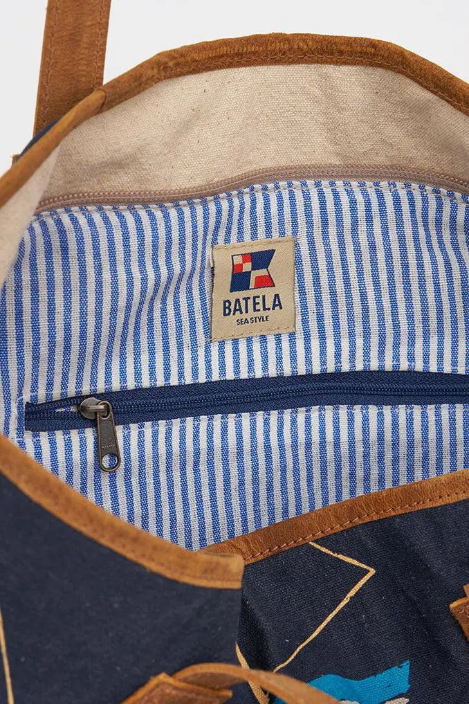 Bolso grande con diseño de barcos fabricado en algodón y con asa de cuero. Este bolso, de 51 cm de largo y 46 cm de alto, destaca por su diseño de barcos, combinando la elegancia del algodón con la robustez del asa de cuero. Ideal para uso diario, playa o compras, ofrece amplitud y un estilo náutico sofisticado. Perfecto para quienes aprecian la funcionalidad y el diseño único en sus accesorios.
