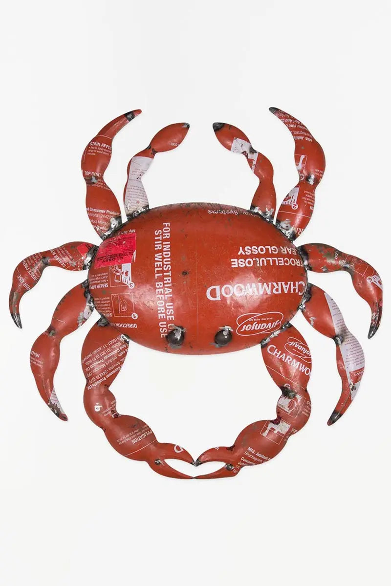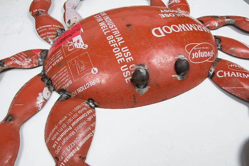 Este cangrejo decorativo está fabricado en metal reciclado, lo que le otorga un acabado rústico y auténtico. Su diseño detallado y su estructura robusta hacen de él un elemento llamativo y perfecto para realzar cualquier ambiente con inspiración marina.