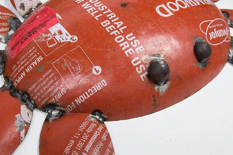 El Cangrejo rojo de metal es una pieza decorativa única que aporta un toque náutico y original a cualquier espacio. Con unas dimensiones de L: 69 cm – H: 69 cm, esta escultura destaca por su llamativo color rojo y su elaboración a partir de bidones reciclados, lo que le confiere un carácter sostenible y artesanal.
