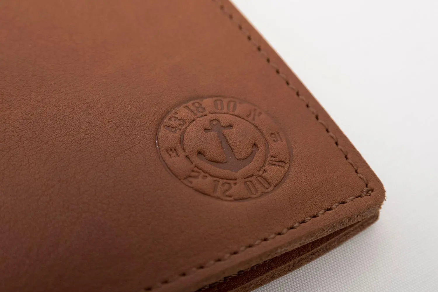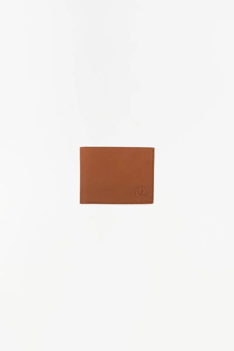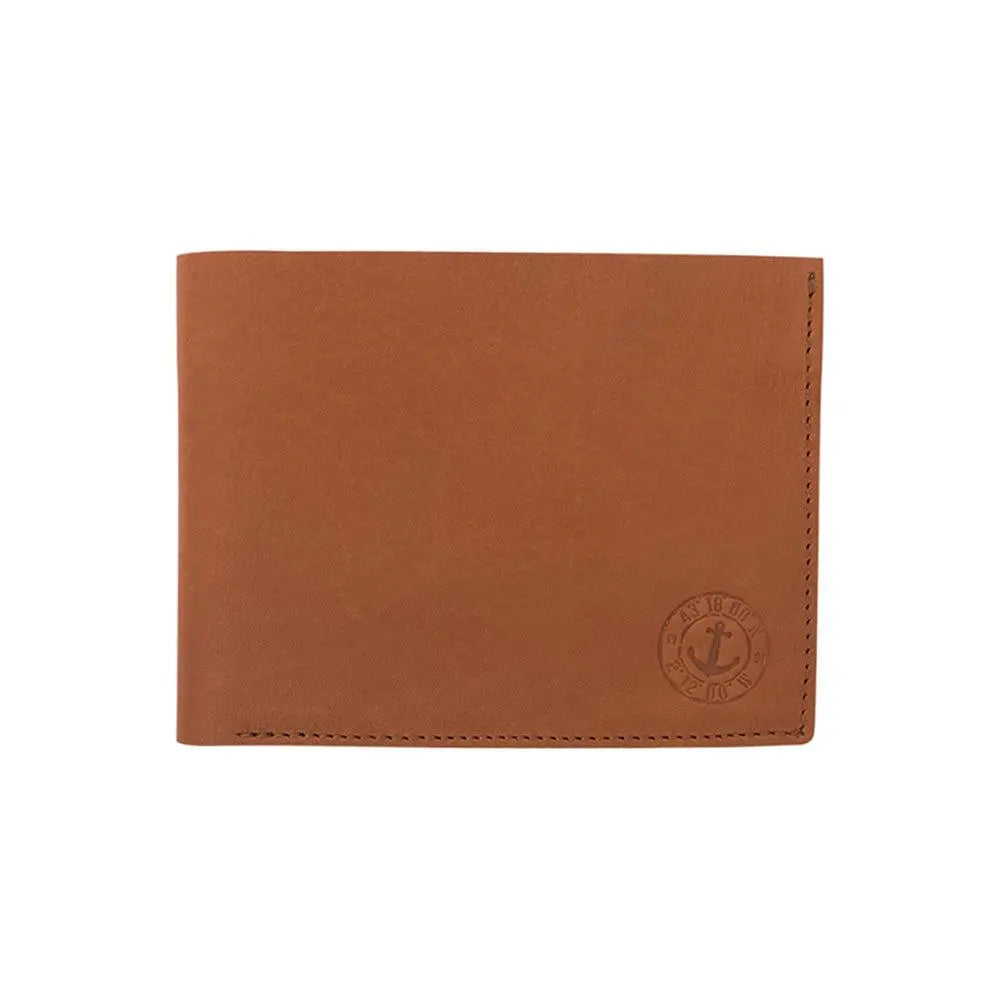 Cartera de cuero con un detalle de un ancla grabada. Dimensiones: l: 12 cm – h: 9 cm.