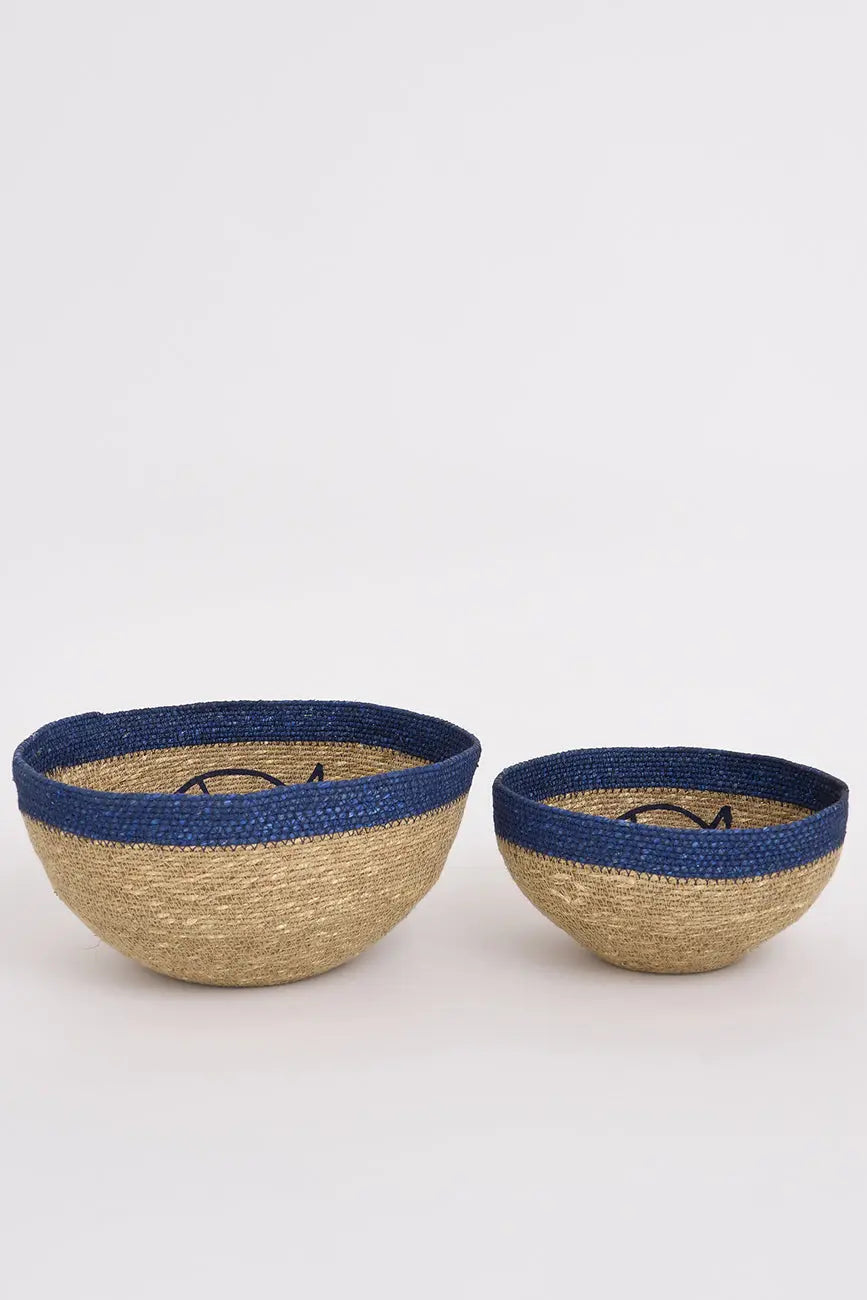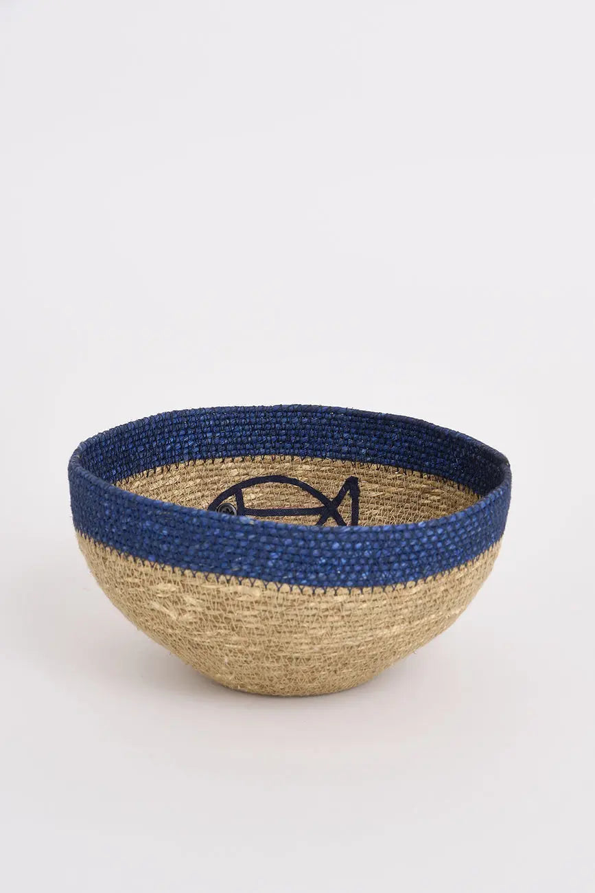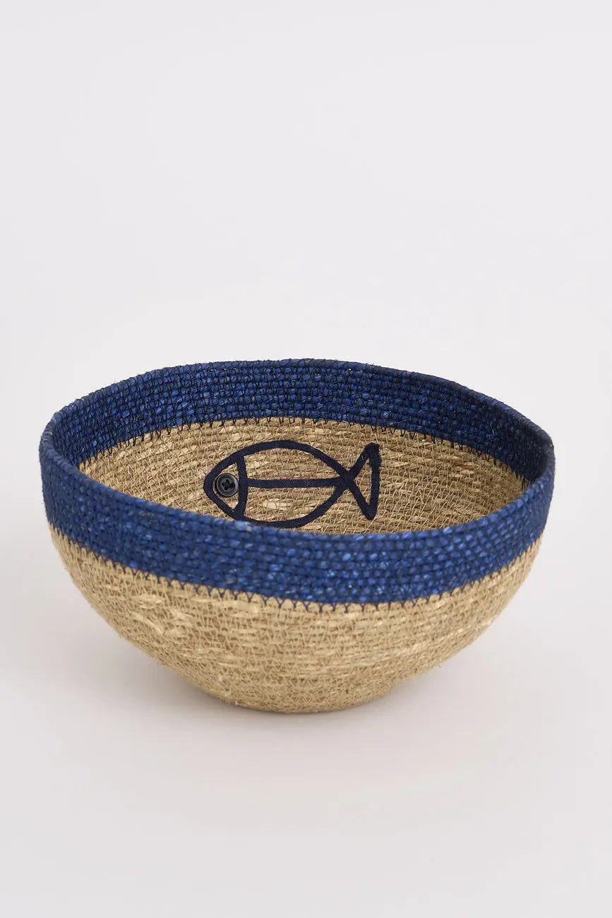 Set de dos cestas de yute con figura de pez este set de dos cestas de yute, decoradas con una encantadora figura de pez, es perfecto para aportar un toque natural y marinero a cualquier espacio. Su diseño artesanal y material resistente las hacen ideales para organizar objetos pequeños, ropa o accesorios, manteniendo el orden con estilo. Dimensiones: h: 14 cm – ø: 28 cm.