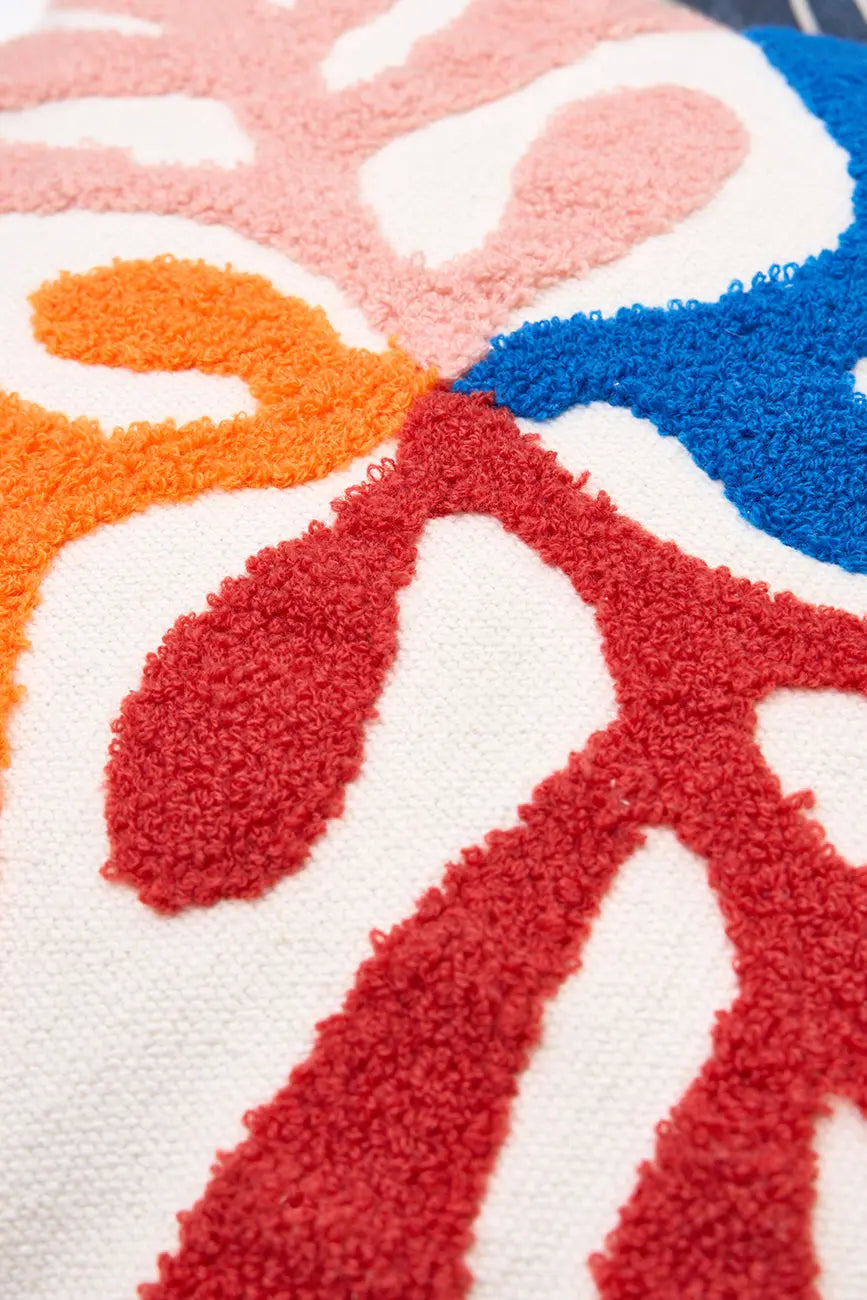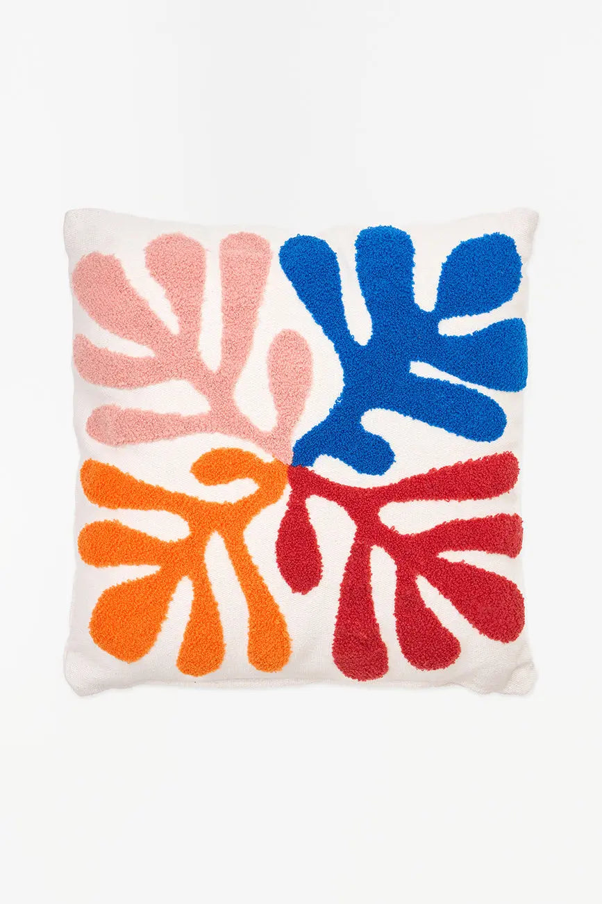 Cojín con bordado de algas en colores alegres este cojín decorativo presenta un hermoso bordado de algas marinas en una paleta de colores vivos y alegres. Su diseño fresco y detallado evoca la belleza del fondo marino, aportando un toque costero y vibrante a tu hogar. Dimensiones: l: 45 cm – h: 45 cm.