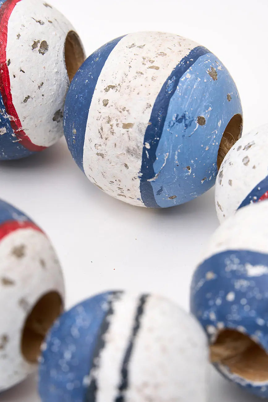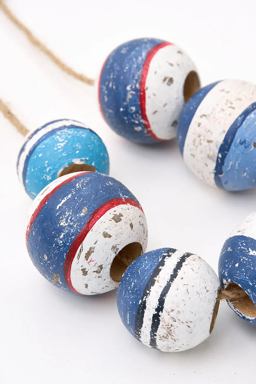 Colgante decorativo de boyas de madera envejecida, ideal para un toque náutico auténtico en cualquier espacio. Perfecto para interiores o patios. Dimensiones: h: 31 cm.
