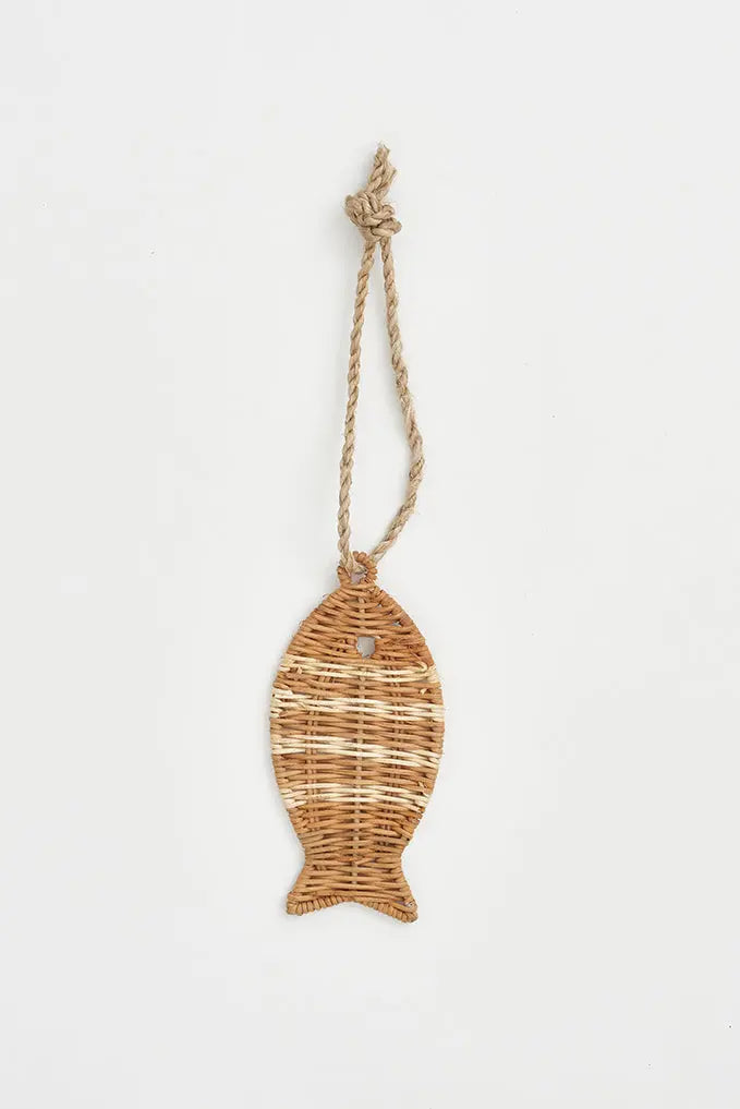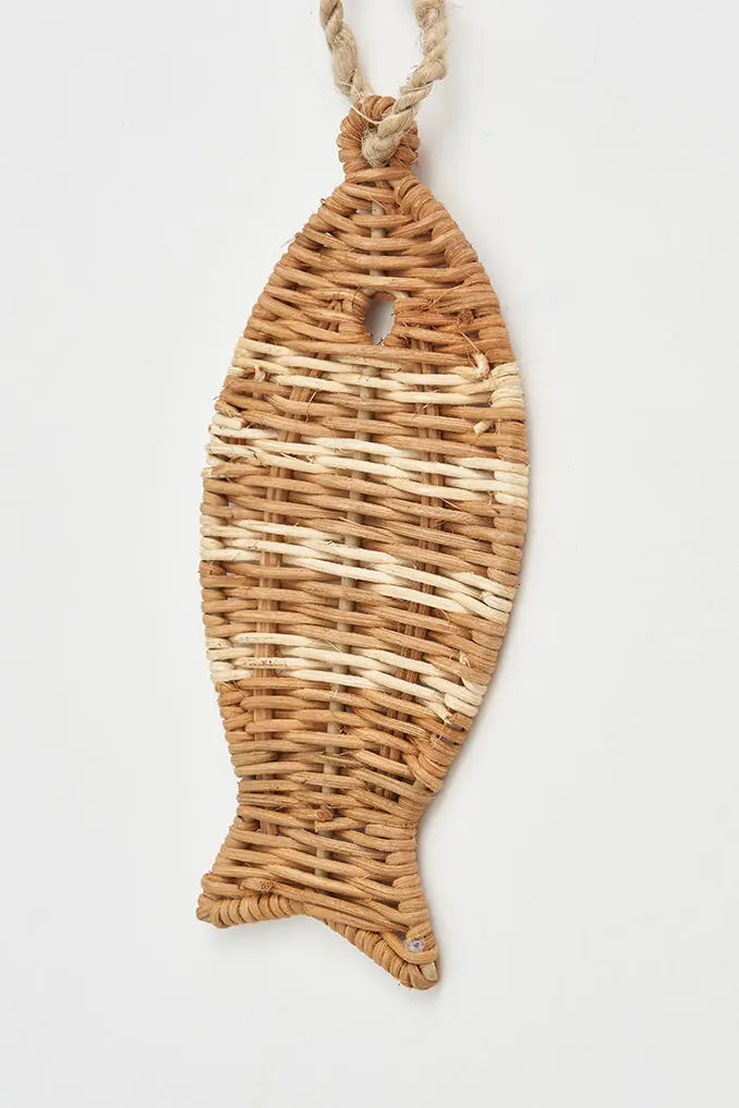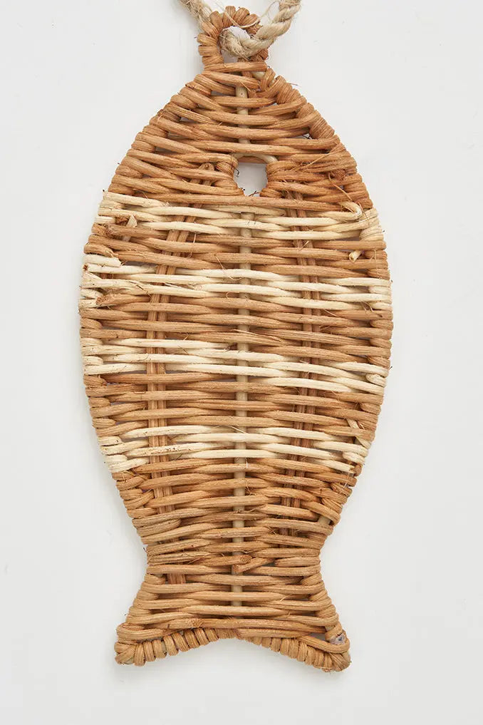 Colgante pez en ratán: encanto natural con estilo embellece tu espacio con nuestro colgante decorativo en ratán con forma de pez. Este accesorio no solo aporta un toque natural y cálido, sino que también le da un estilo único a tu decoración. Dimensiones: l: 9 cm – h: 19 cm.