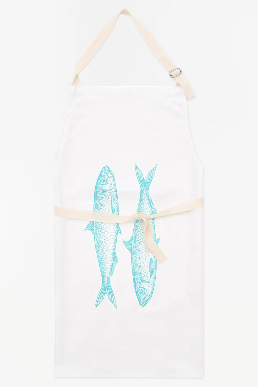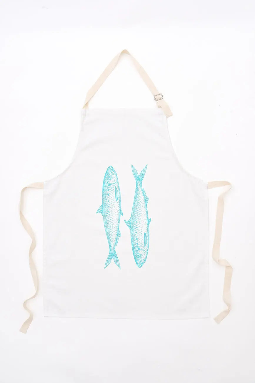 Delantal en algodón drill, decorado con un alegre diseño de peces que aporta un toque marino a tus actividades culinarias. Este delantal es perfecto para cocinar con estilo, combinando funcionalidad y facilidad de uso. Dimensiones: l: 63,5 cm – h: 80 cm.