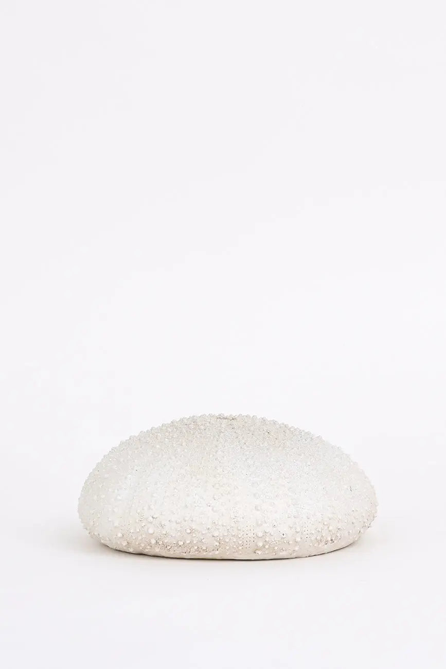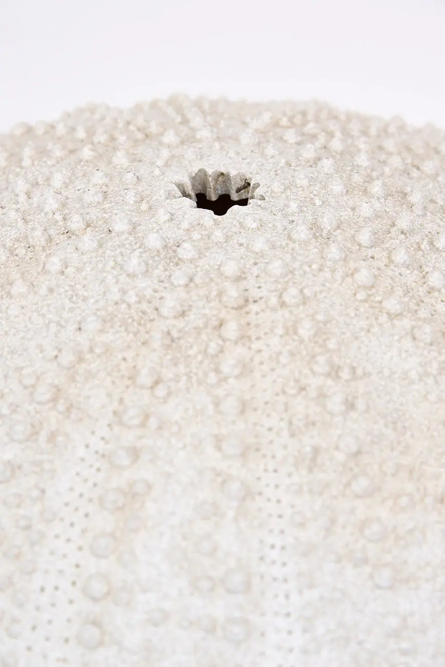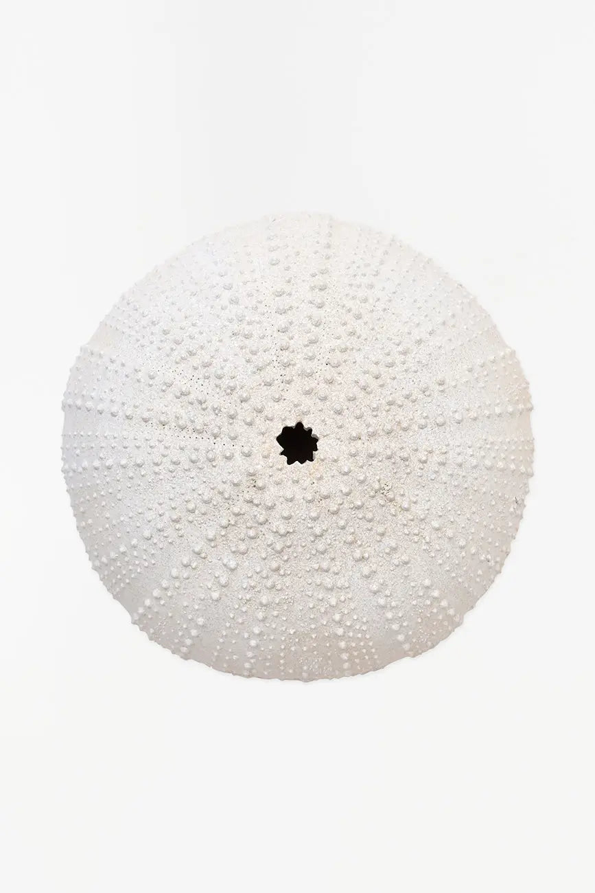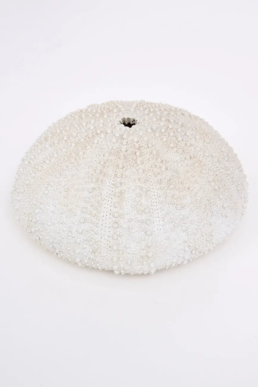Erizo de mar decorativo pequeño, fabricado en resina de alta calidad y en un elegante color blanco, ideal para añadir un toque delicado y costero a cualquier espacio. Su diseño detallado y su tamaño compacto lo hacen perfecto para colocar en estanterías, mesas o como parte de una decoración temática marina. Dimensiones: h: 8,5 cm – ø: 20 cm.