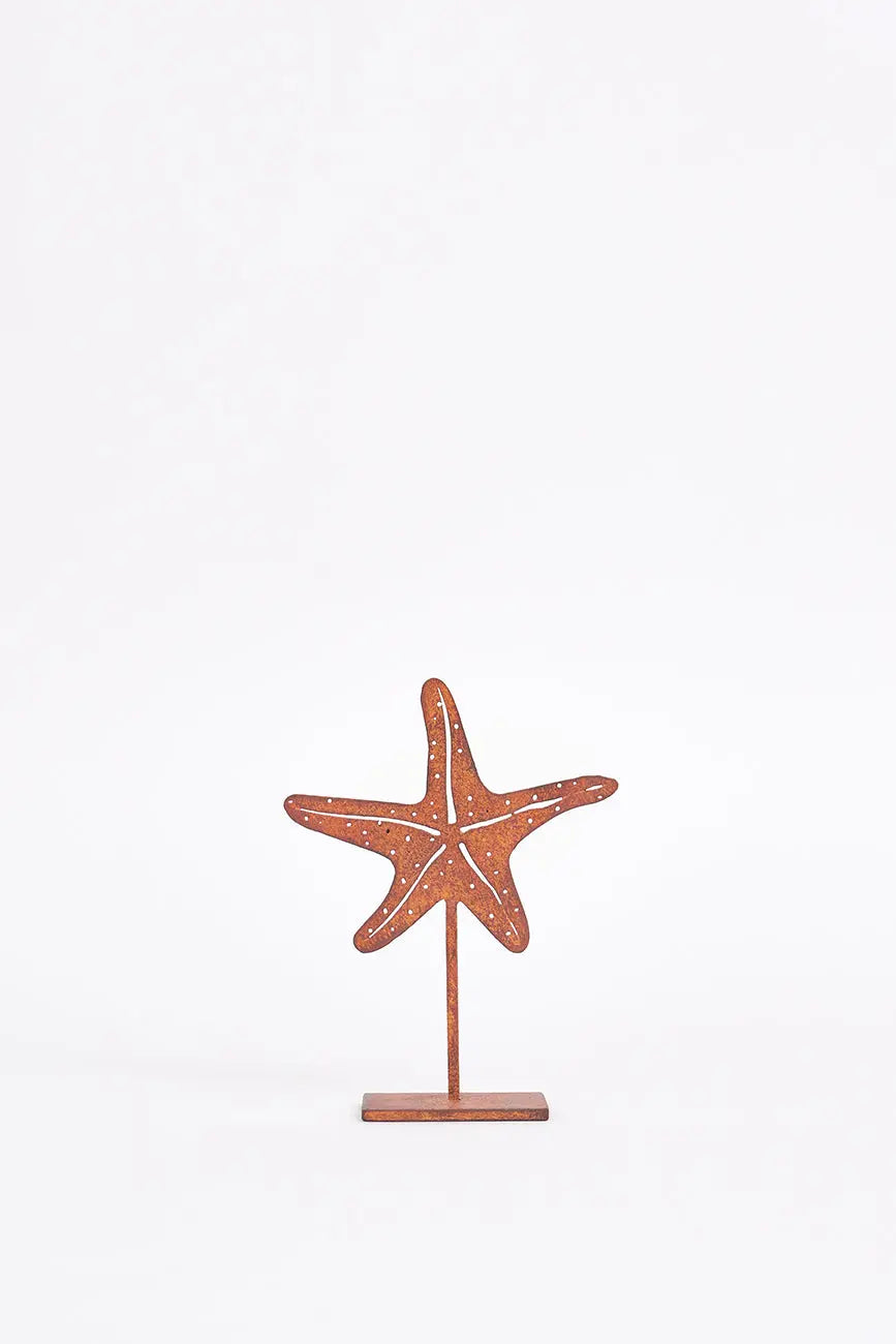 Estrella de mar decorativa en hierro con base, ideal para aportar un toque marinero y sofisticado a tu hogar. Dimensiones: l: 15 cm – w: 5 cm – h: 20 cm.
