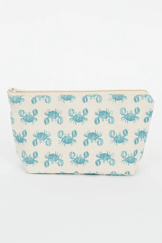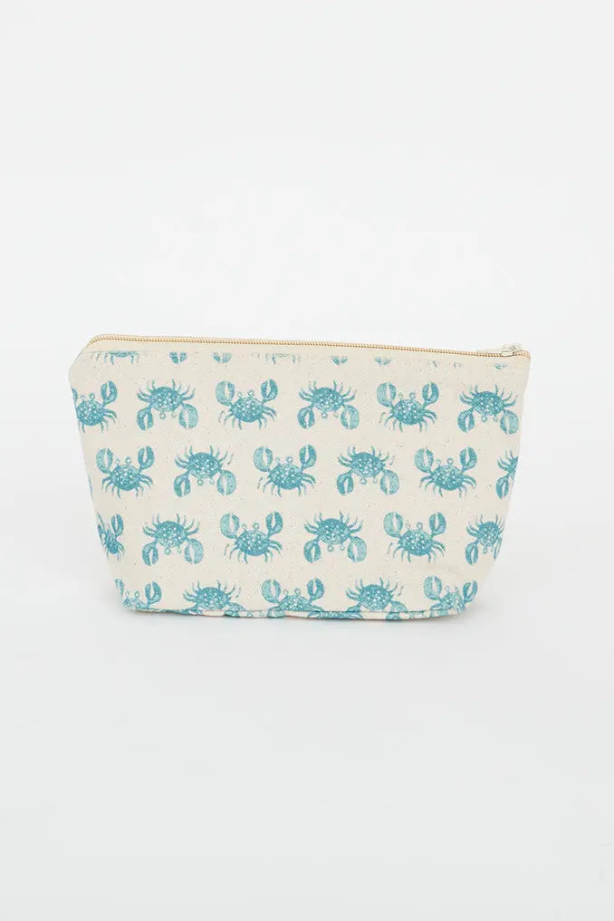 Estuche con cangrejos estampados en tejido canvas azul. Este estuche de 24 cm de largo y 13 cm de alto, confeccionado en algodón canvas azul y adornado con estampados de cangrejos, es perfecto para organizar tus artículos pequeños con un toque marítimo. Su diseño práctico y estético lo hace ideal para el uso diario, llevando un poco del encanto del océano contigo. Dimensiones: l: 24 cm – h: 13 cm.