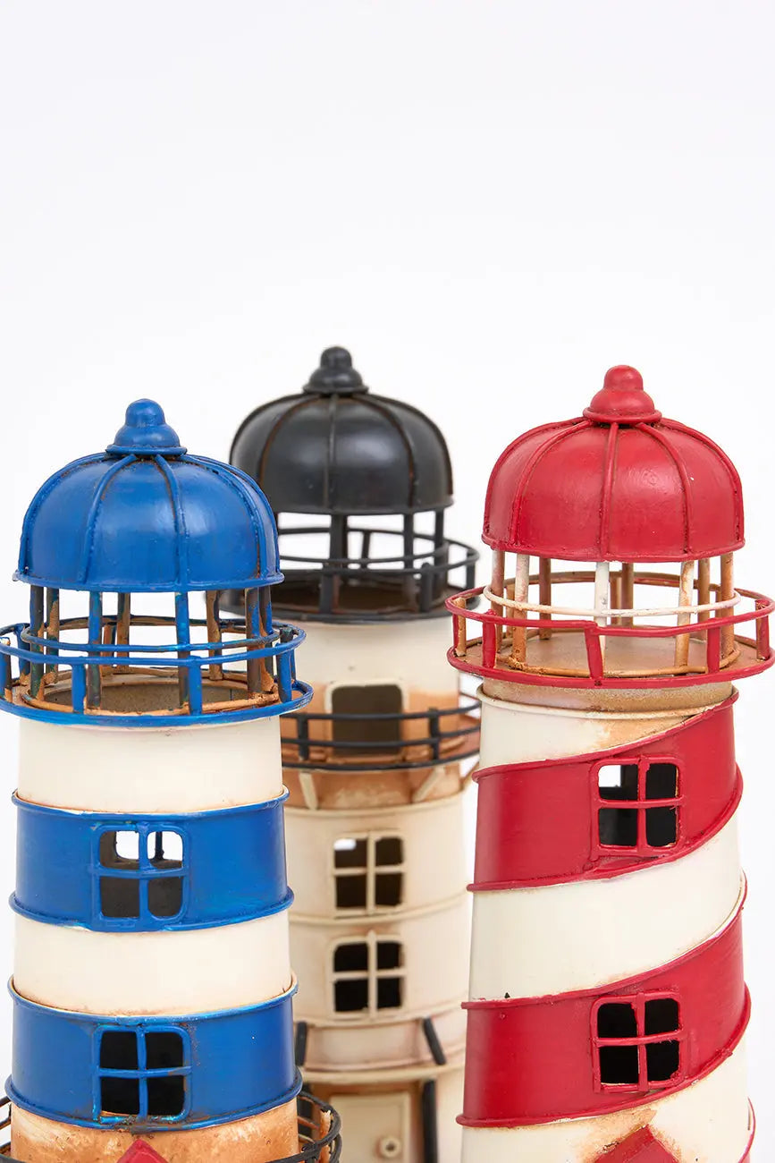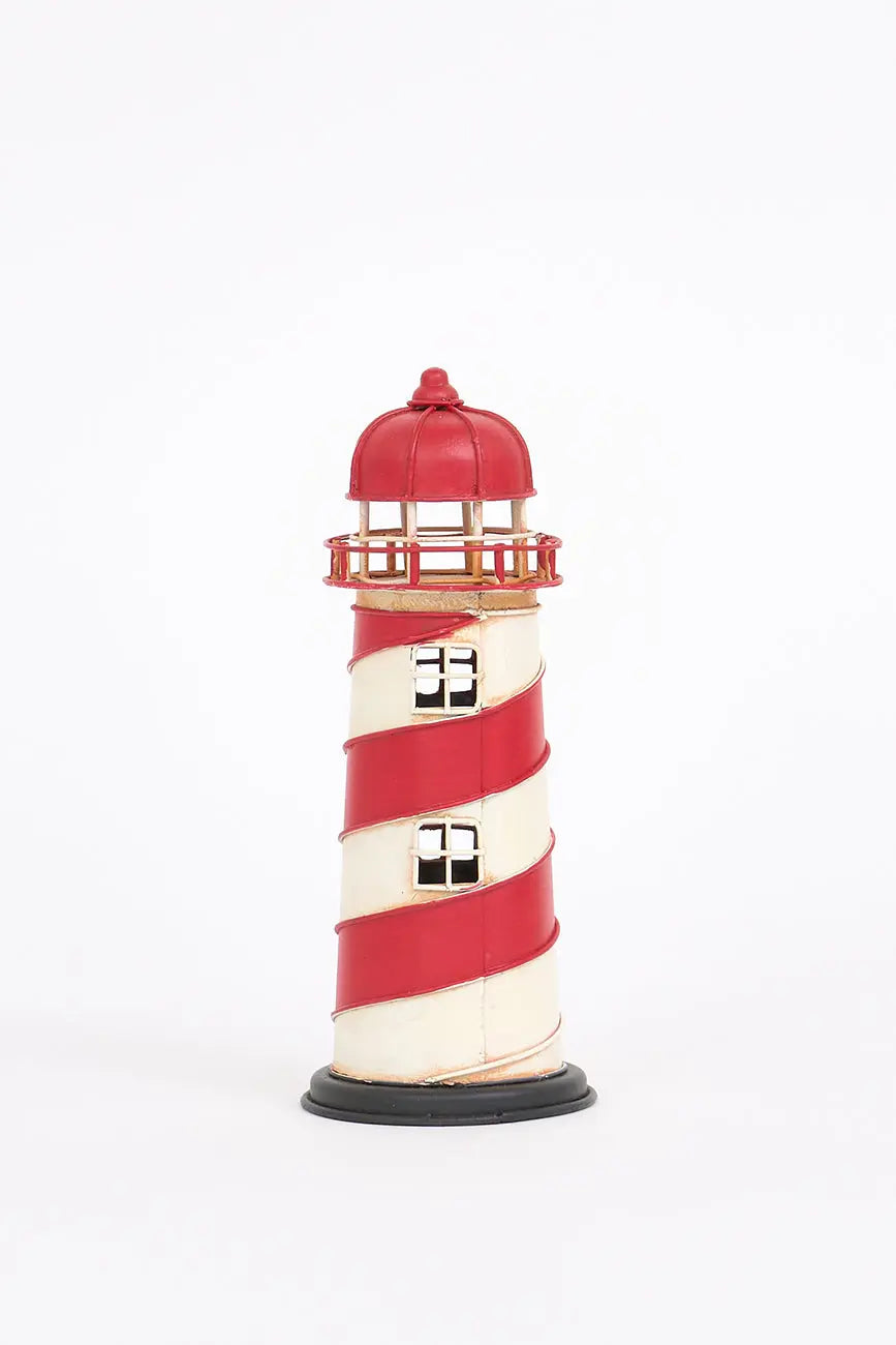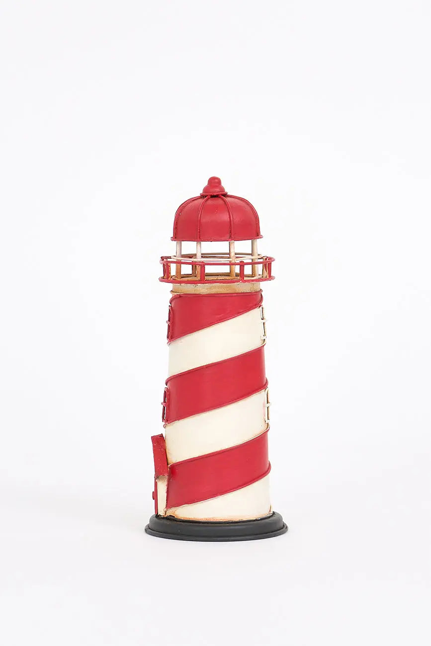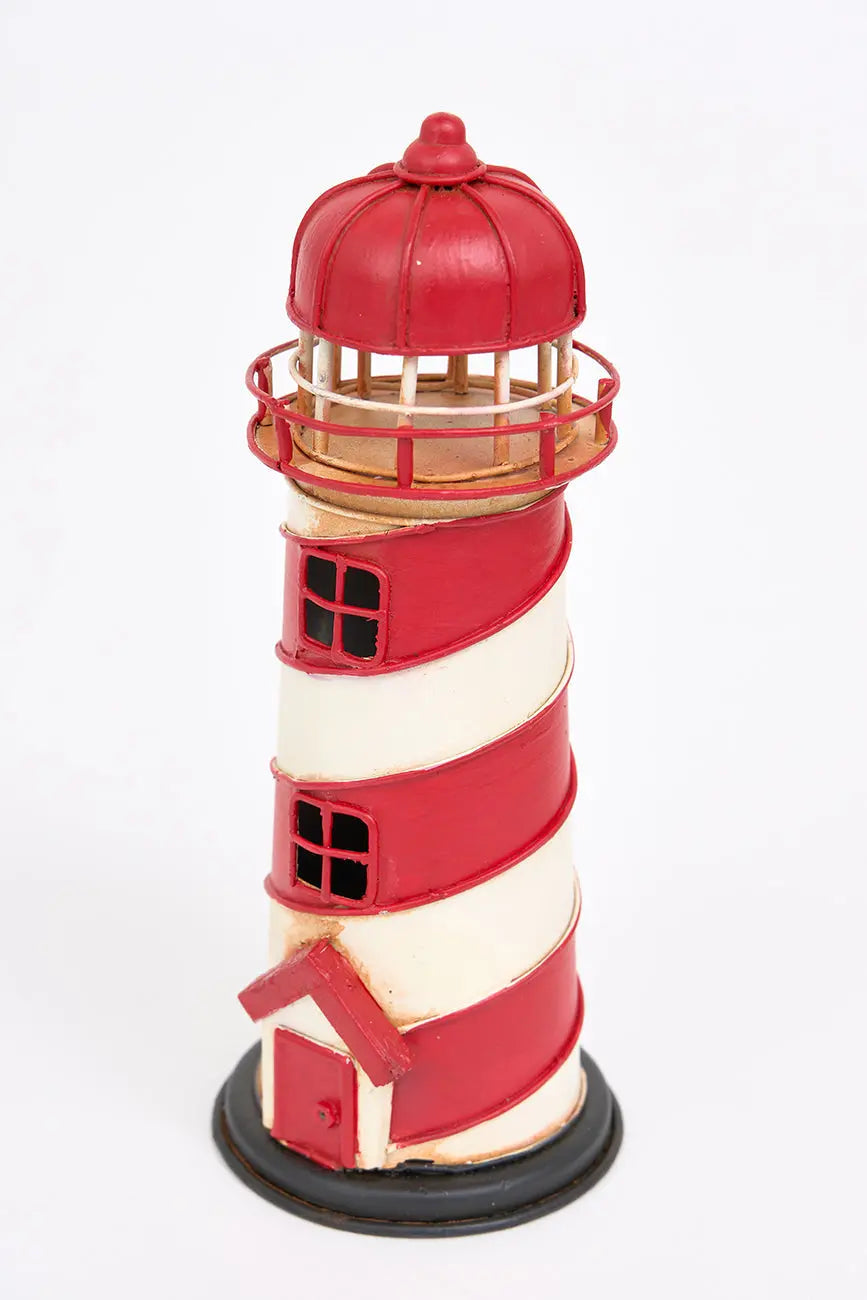 Pequeño faro decorativo rojo a rayas en metal, una pieza encantadora que evoca la belleza y serenidad de la costa. Fabricado en metal de alta calidad, este faro presenta un diseño con rayas rojas y blancas, aportando un toque vibrante y náutico a cualquier espacio. Dimensiones: h: 17 cm – ø: 7 cm.