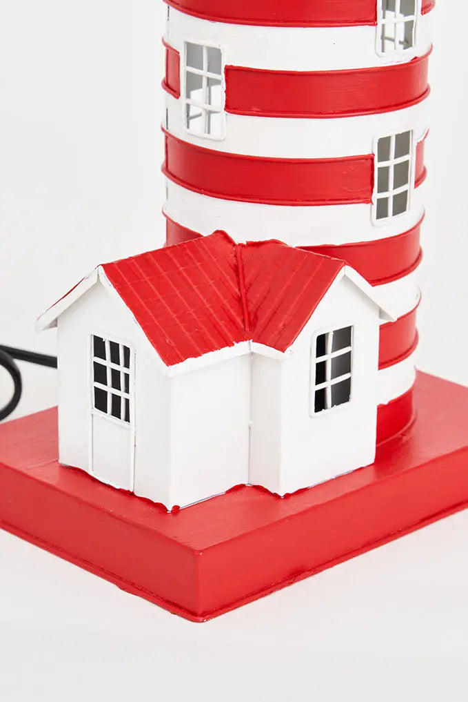 Faro de metal con caseta: iluminación náutica en tu hogar añade un toque cautivador a tu espacio con nuestro faro de metal. Con su diseño en rojo, negro y blancoy su preciosa caseta, este faro de 29 cm no solo ilumina tu habitación, sino que también agrega un encanto náutico único. Colócalo en tu estantería, mesa auxiliar o rincón favorito para crear una atmósfera marítima acogedora. Funciona con conexión a red eléctrica. Bombilla no incluida. Dimensiones: l: 16 cm – w: 12 cm – h: 29,5 cm.