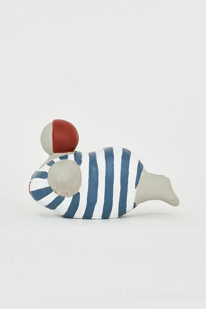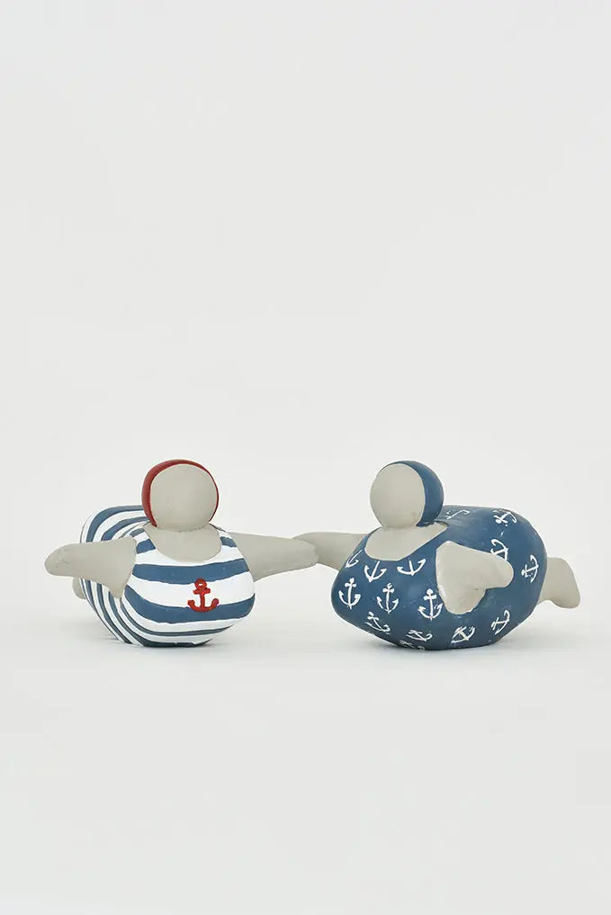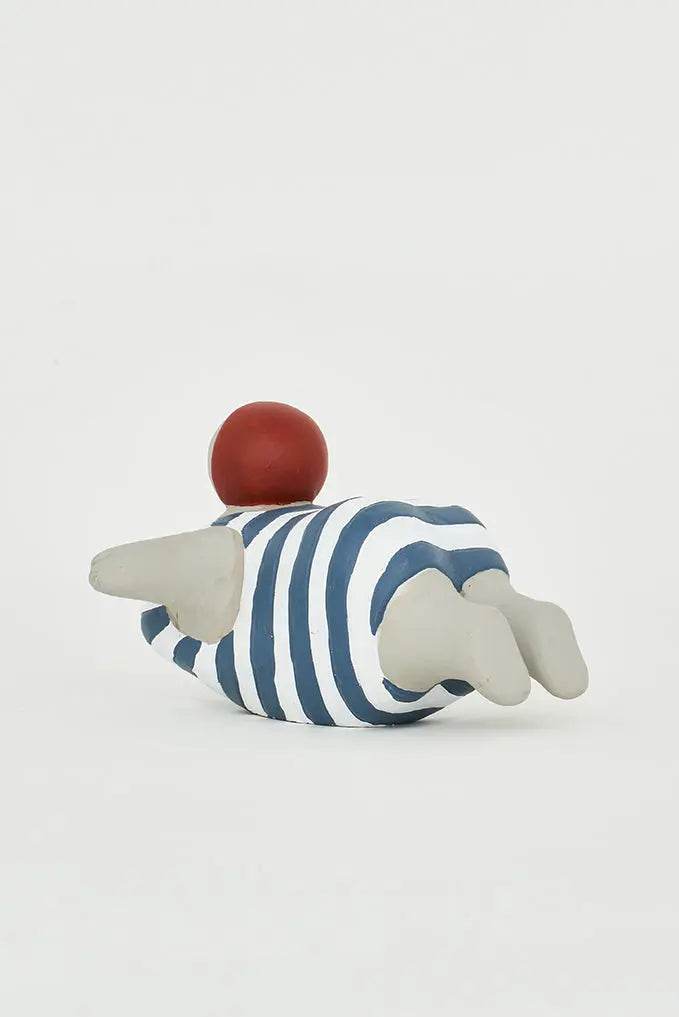 Figura de bañista en cemento con bañador a rayas: estilo playero añade un toque veraniego a tu decoración con nuestra figura de bañista en cemento, luciendo un bañador a rayas que transmite la esencia de la playa. Esta pieza única no solo evoca la frescura del verano, sino que también aporta autenticidad y encanto a tu hogar. Perfecta para regalo. Dimensiones: l: 18 cm – h: 11,5 cm.