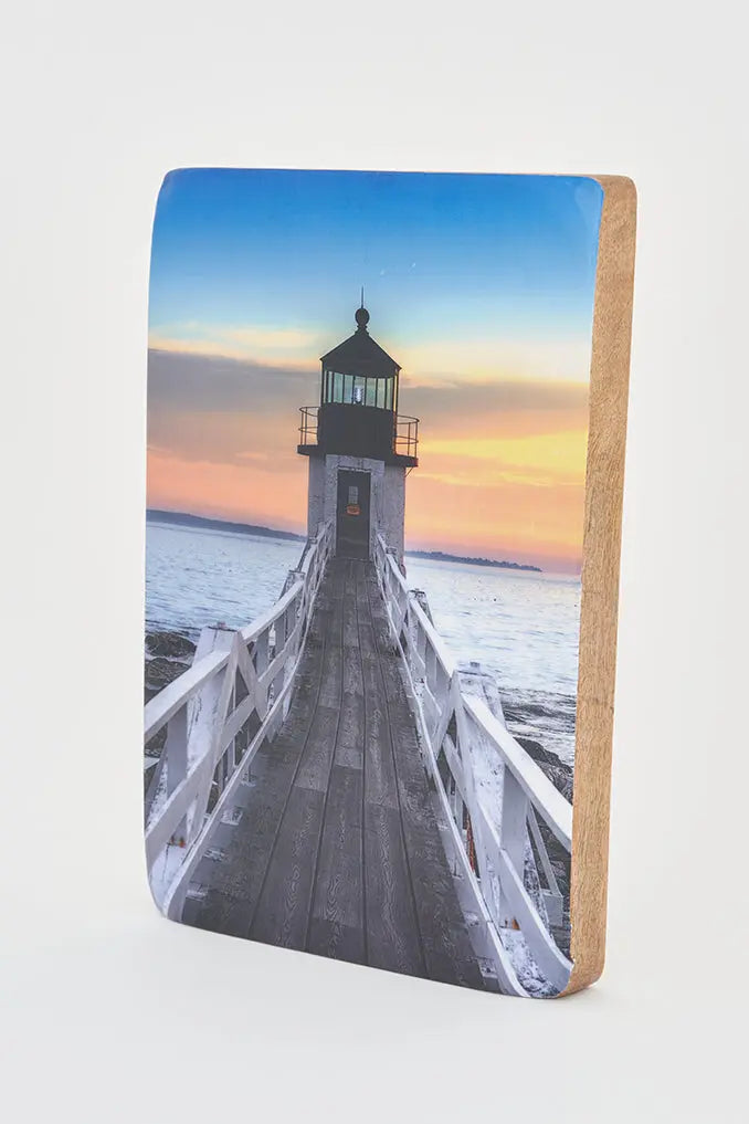 Foto en taco de madera: atardecer en el faro transforma tu espacio con nuestra imagen impresa en taco de madera esmaltada que transmite la serenidad de un precioso atardecer en un faro. Este encantador accesorio decorativo añade un toque relajante y náutico a tus paredes. Ideal para regalar a amantes de la costa y la tranquilidad. Dimensiones: l: 20 cm – w: 30 cm – h: 3 cm.