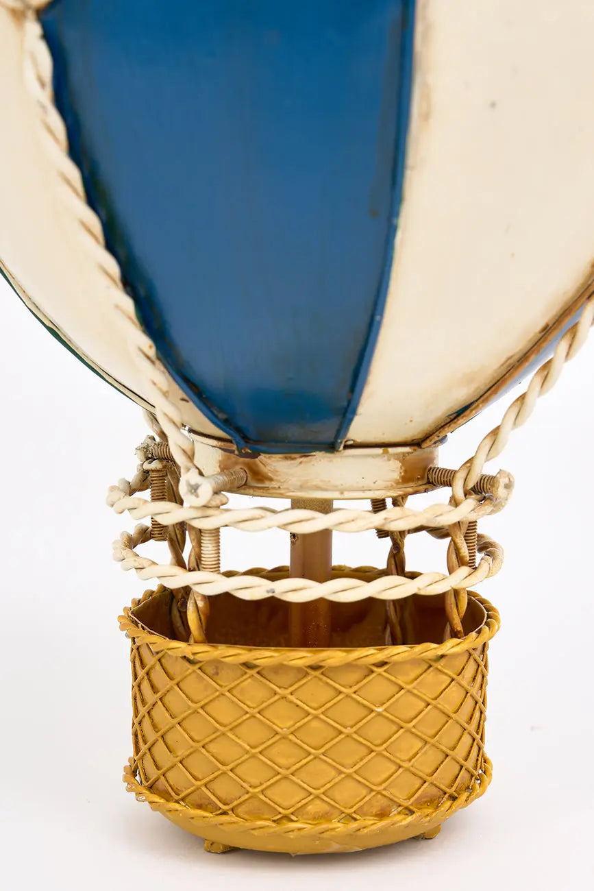 Globo decorativo mediano en metal azul y beige, estilo vintage, una pieza única que añade un toque de nostalgia y elegancia a cualquier espacio. Fabricado en metal de alta calidad. Dimensiones: h: 29 cm – ø: 16 cm.