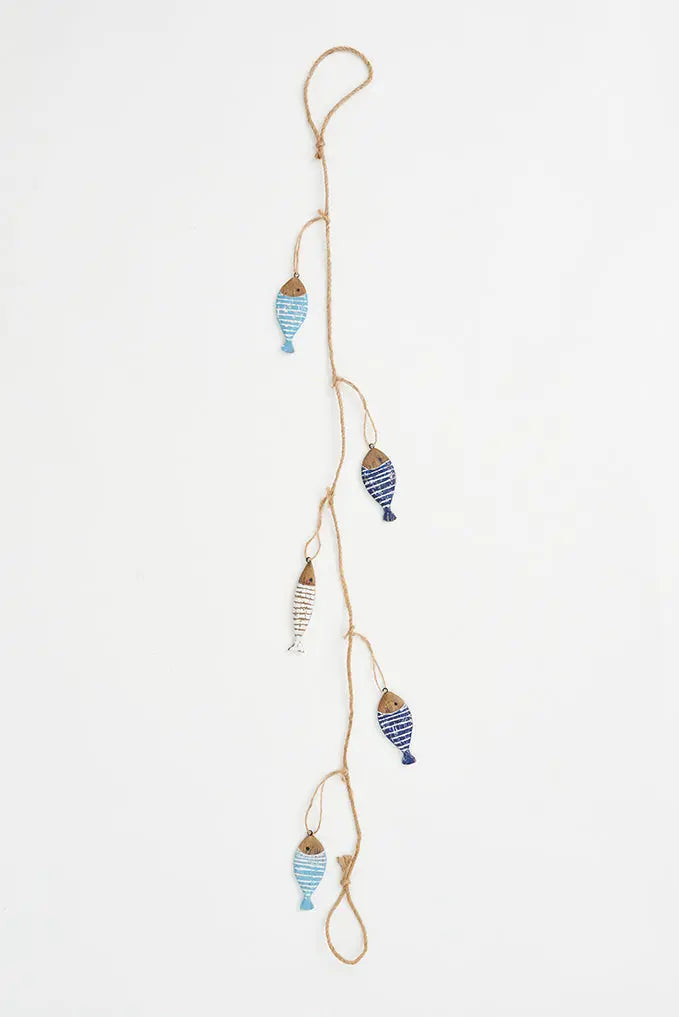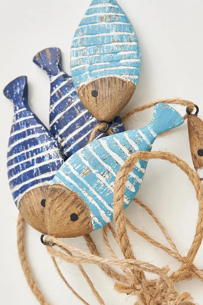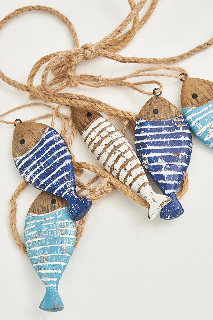 Guirnalda con peces en varios colores de madera a rayas dale vida a tu espacio con nuestra guirnalda con peces en varios colores de madera a rayas, perfecta para añadir un toque único y náutico a cualquier rincón. Ideal para regalo. Dimensiones: h: 120 cm.