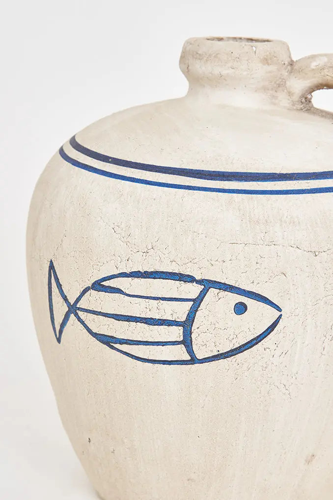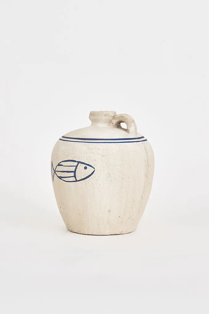 Vasija mediana con pez dibujado azul estilo vintage: toque náutico añade un toque náutico encantador a tu decoración con nuestra vasija de estilo vintage, decorada con un pez dibujado en azul. Con un tamaño mediano y una forma redondeada clásica, esta pieza no solo es funcional sino que también es un elemento distintivo para realzar tu estilo. Dimensiones: l: 21,5 cm – h: 25,5 cm.
