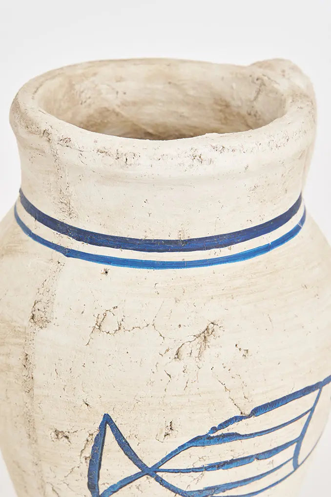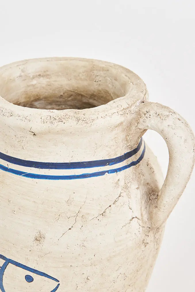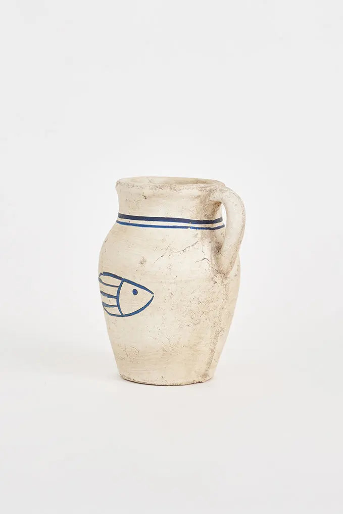 Jarra con pez dibujado azul en terracota: toque náutico vintage descubre nuestra jarra de terracota con un encantador pez dibujado en azul. Este objeto especial no solo sirve para tus bebidas favoritas, sino que también añade un toque náutico vintage a tu colección de vajilla. La terracota le confiere un estilo rústico y auténtico, mientras que el dibujo del pez evoca la serenidad del mar. Apto para lavavajillas y microondas. Dimensiones: l: 16,5 cm – h: 20 cm.