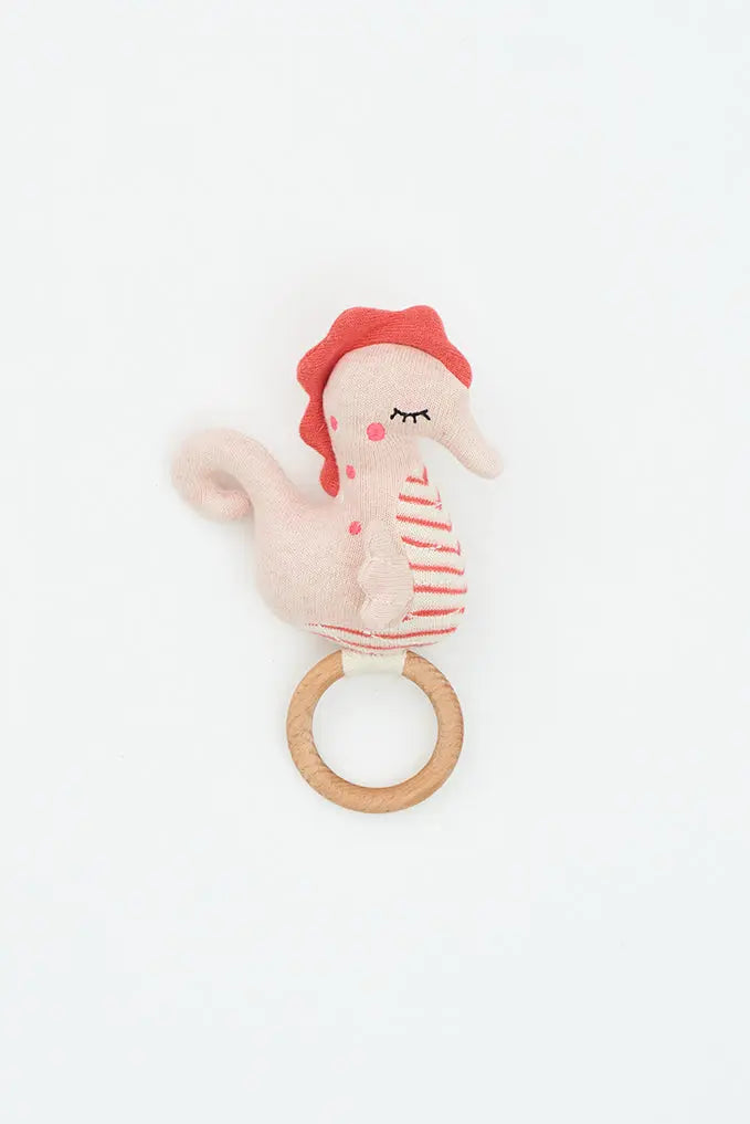 Sonajero caballito de mar: divertido y encantador este adorable sonajero con forma de caballito de mar está diseñado para brindar diversión y estimulación a los más pequeños. Fabricado con materiales seguros y suaves, el sonajero proporciona una experiencia táctil agradable para los bebés mientras exploran y juegan.