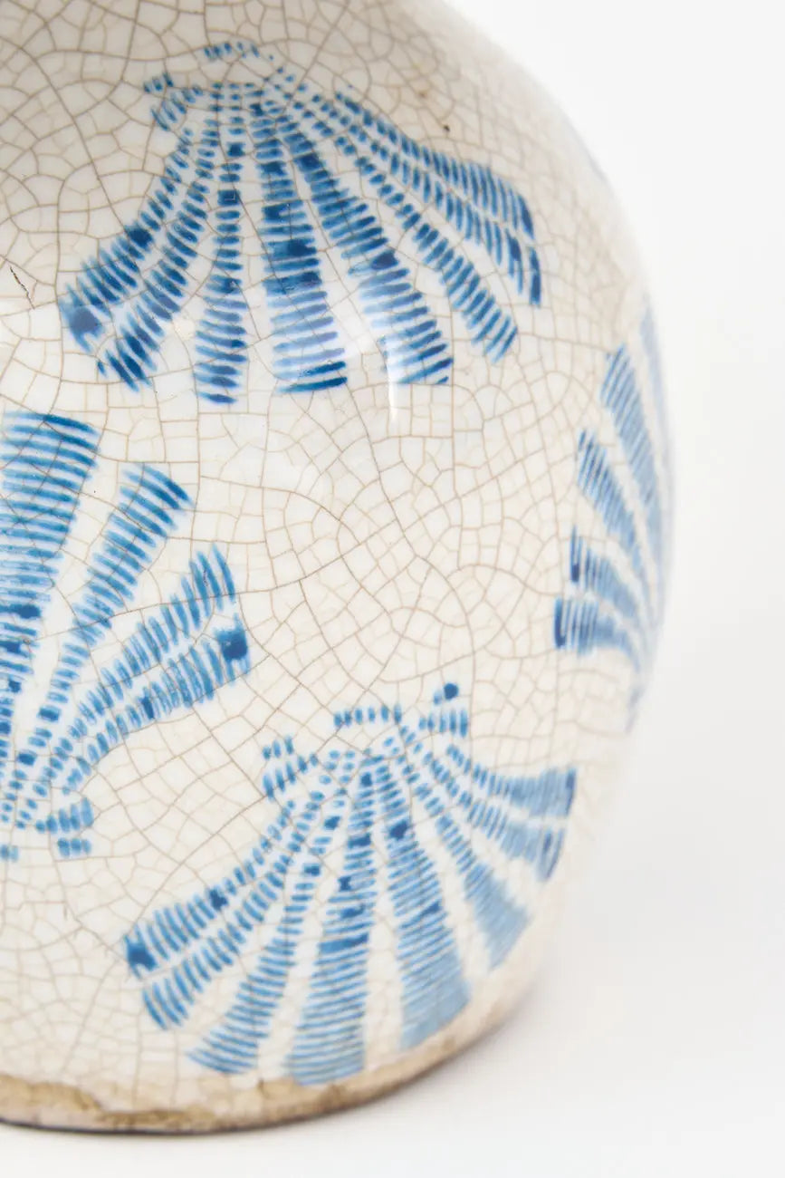 Esta lámpara de terracota, adornada con conchas estampadas a mano, ofrece un ambiente cálido que transforma cualquier habitación. Su diseño marino añade un toque de originalidad y frescura, convirtiéndola en la pieza perfecta para crear un ambiente acogedor. Dimensiones: h: 23 cm – ø: 15 cm.