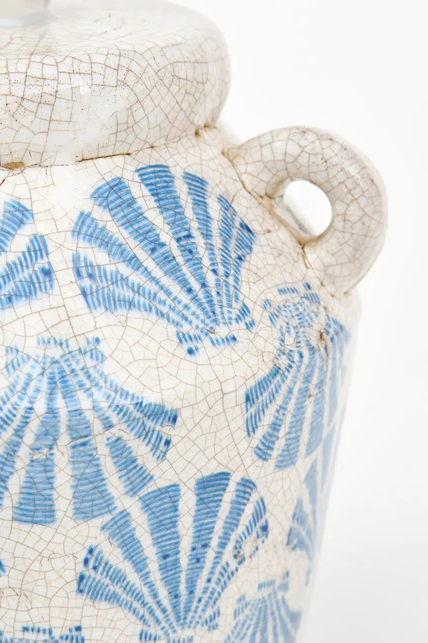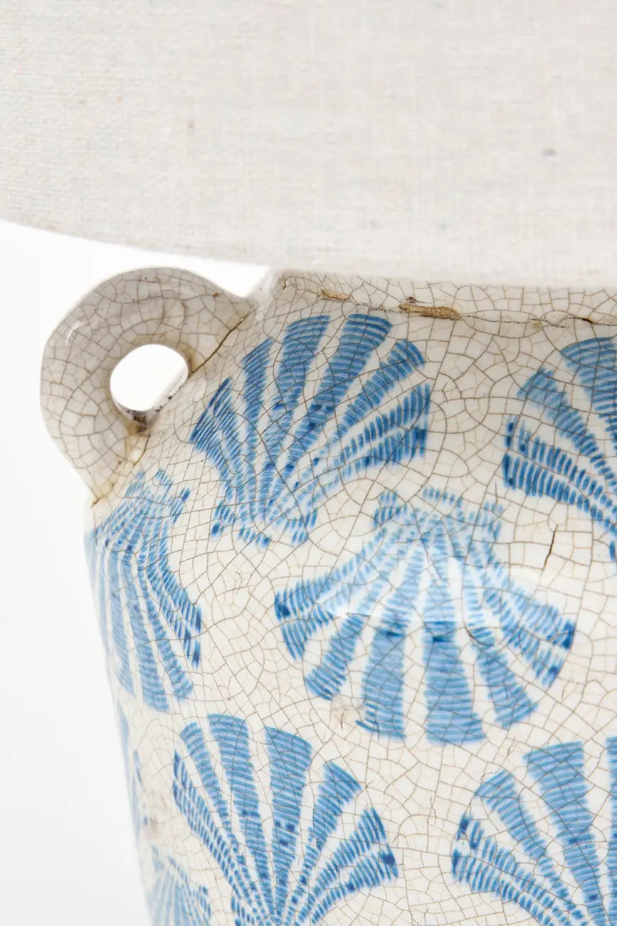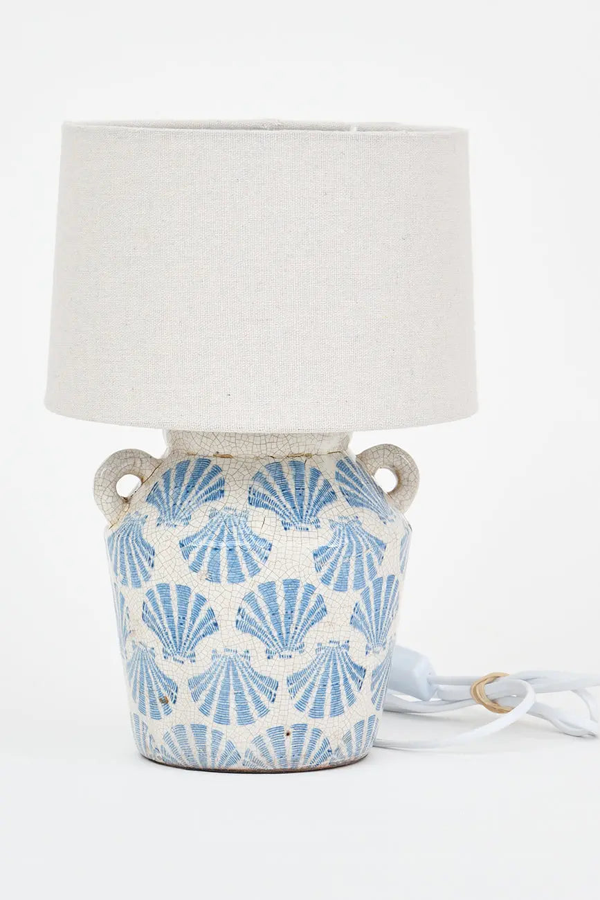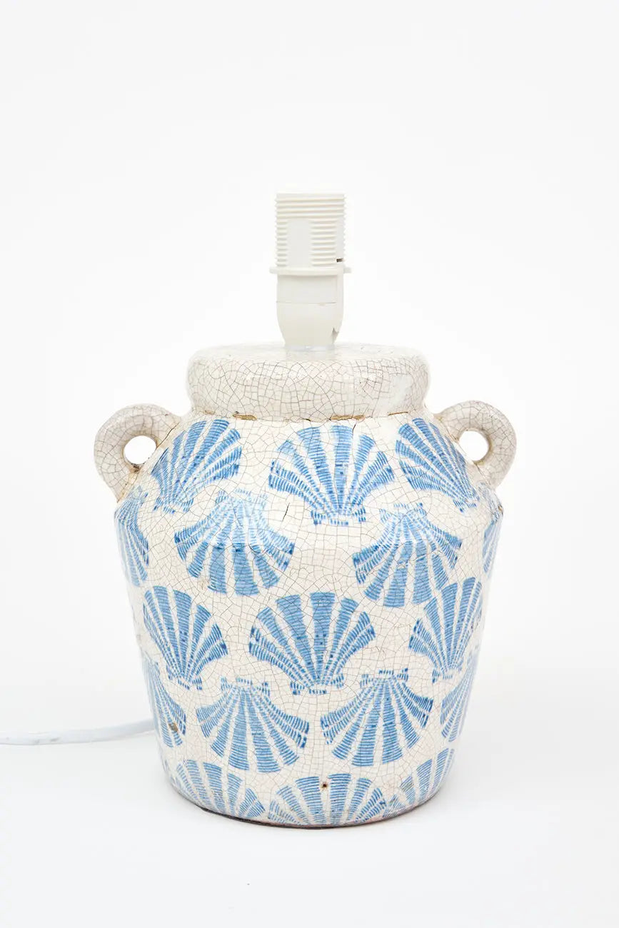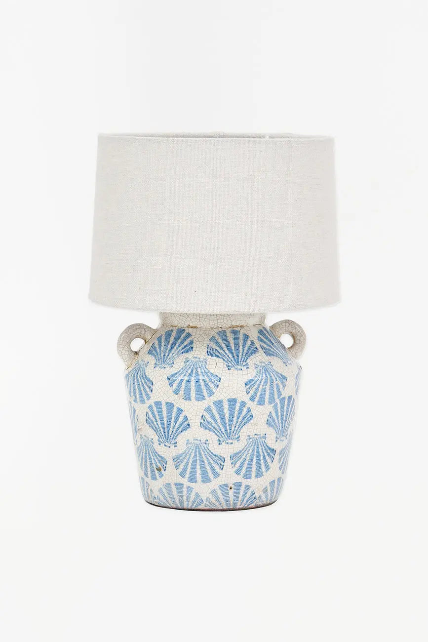 Esta lámpara de terracota, adornada con conchas estampadas a mano, ofrece un ambiente cálido que transforma cualquier habitación. Su diseño marino añade un toque de originalidad y frescura, convirtiéndola en la pieza perfecta para crear un ambiente acogedor. Dimensiones: h: 32 cm – ø: 23 cm.