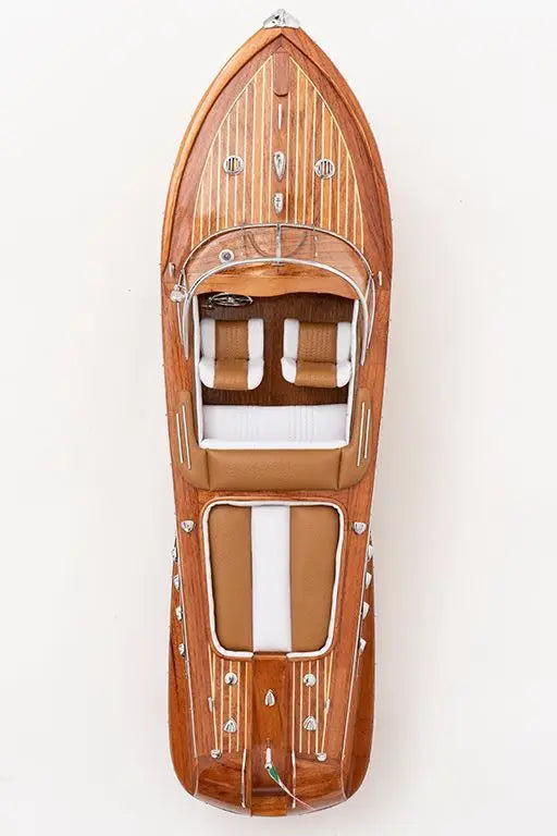 Réplica lancha de madera con bandera de italia. Materiales de alta calidad y un objeto marinero único para decorar tu hogar o negocio. Dimensiones: l: 67 cm.
