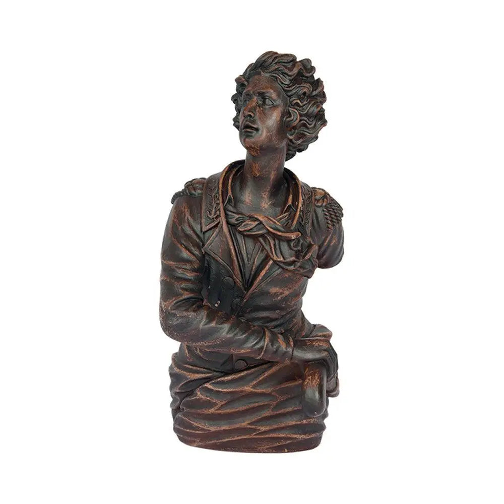 Mascarón hecho de resina. Este busto de un oficial vestido con uniforme y con una pistola en una mano y el cuerpo levemente girado, fue el mascarón de proa de la corbeta bayonaise. Dimensiones: h: 35 cm.