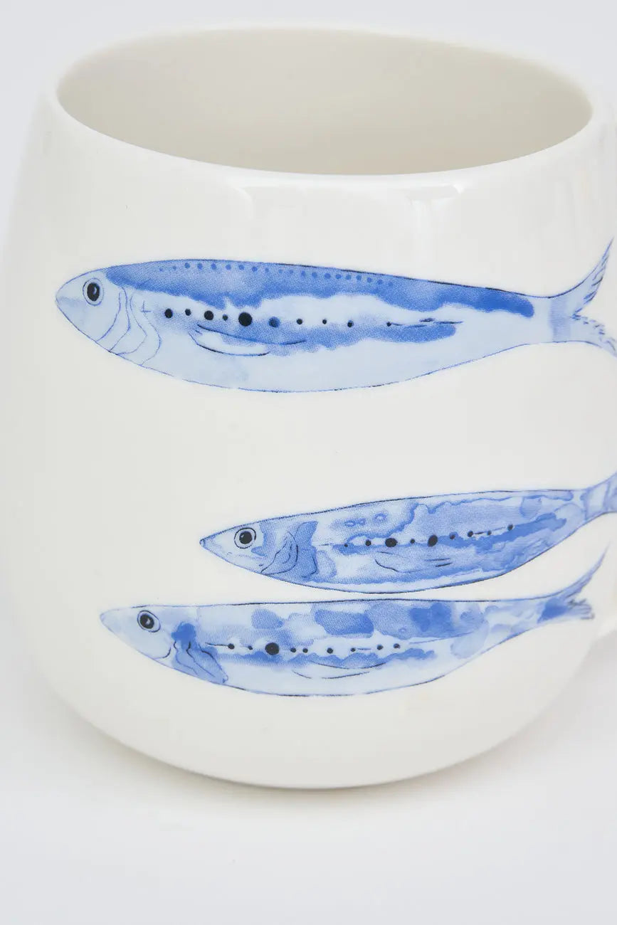 Mug de porcelana con diseño de peces, ideal para los amantes del estilo marinero. Su elegante acabado y el diseño detallado de los peces hacen de esta taza una pieza única. Dimensiones: h: 10 cm – ø: 8 cm.