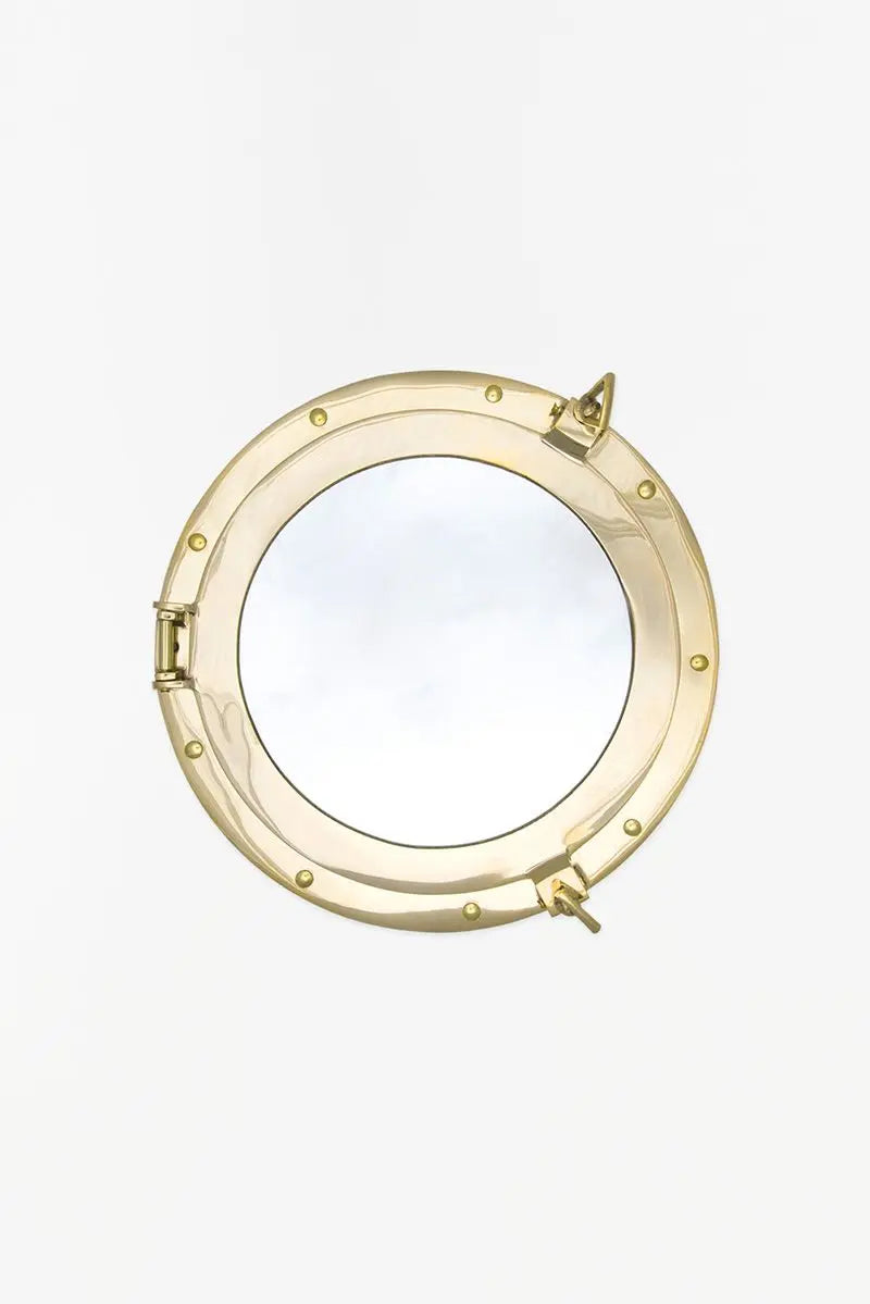 Llamativo espejo con forma de ojo de buey realizado en latón. Dota a tu hogar de un toque náutico único! 26 cm. Dimensiones: ø: 26 cm.