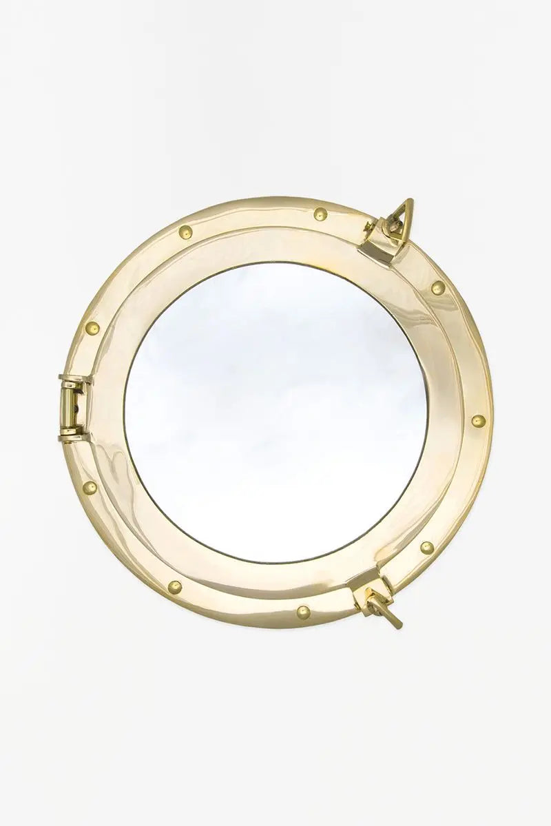 Llamativo espejo con forma de ojo de buey realizado en latón. Dota a tu hogar de un toque náutico único! 30 cm. Dimensiones: ø: 30 cm.
