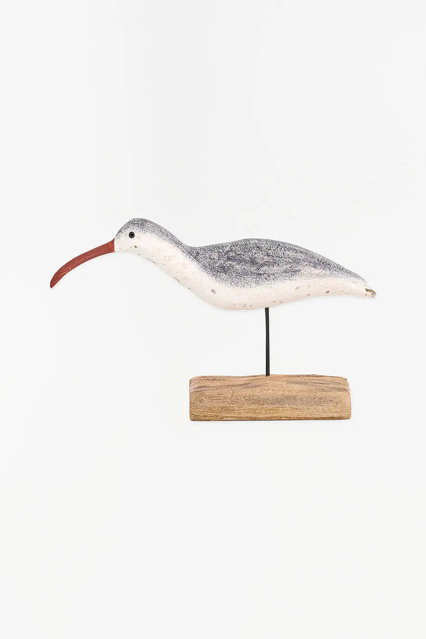 Original figura de madera de un ave costera en tonos blancos y grises esta figura única de madera representa un ave costera, pintada en tonos suaves de blanco y gris que evocan la tranquilidad del mar. Su diseño elegante y minimalista captura la esencia de la vida costera, mientras que la madera aporta un toque rústico y natural. Dimensiones: l: 30 cm – w: 8 cm – h: 19 cm.