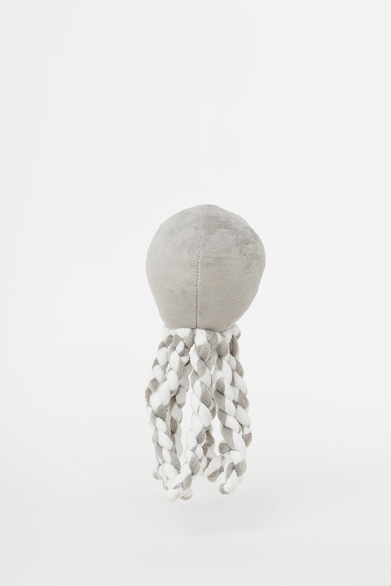 Pulpo de peluche en algodón en color gris con los tentáculos trenzados. Dimensiones: h: 26 cm.