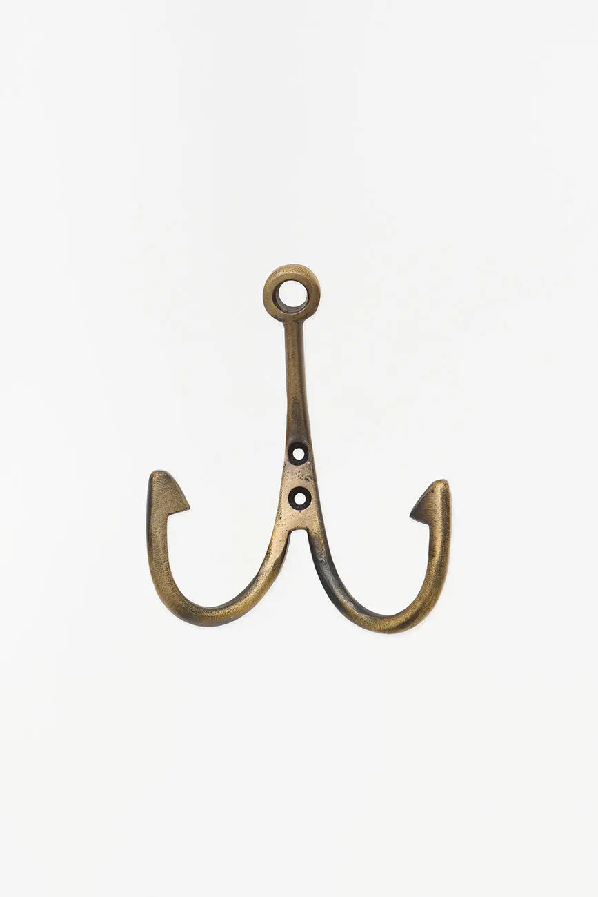 Perchero de metal con forma de anzuelo. Original perchero de metal con forma de anzuelo y dos colgadores. Un accesorio práctico y con un toque náutico para los amantes de lo marino. Dimensiones: l: 10,5 cm – w: 3,5 cm – h: 12 cm.