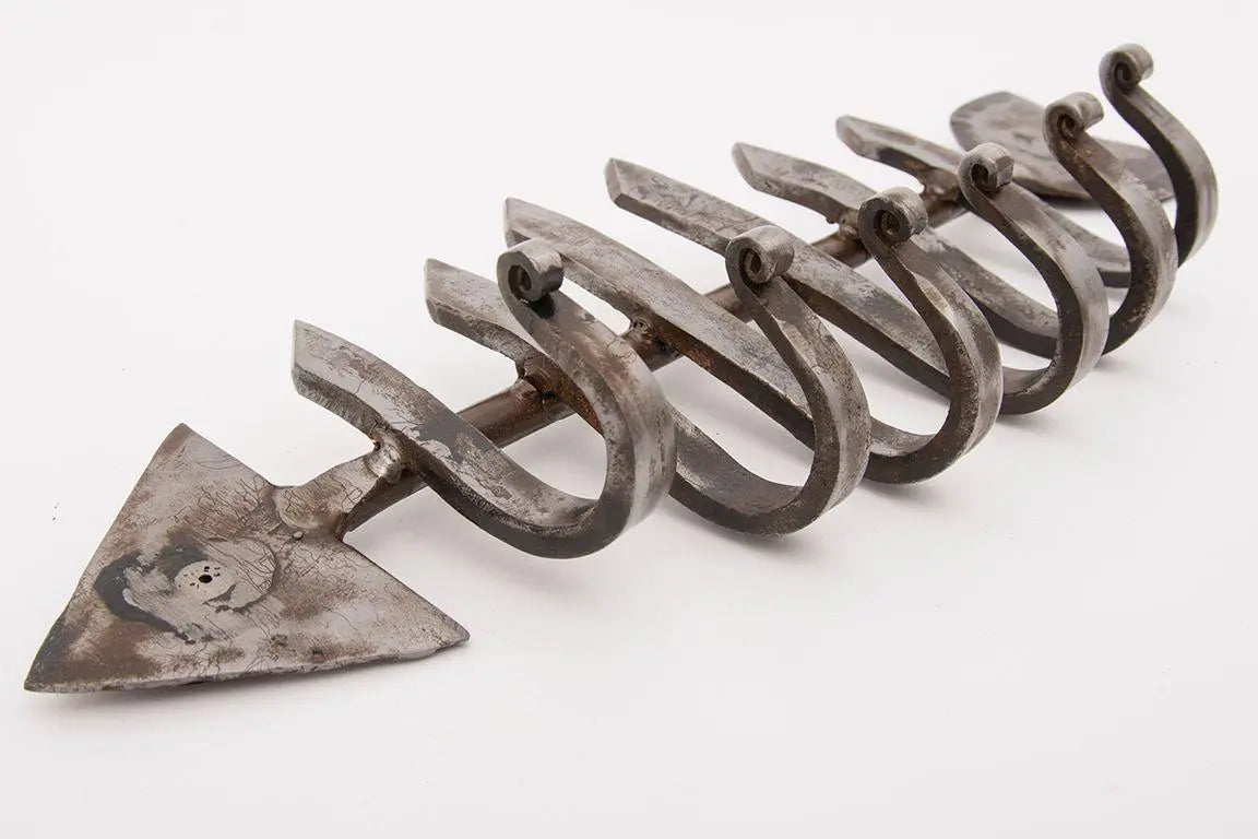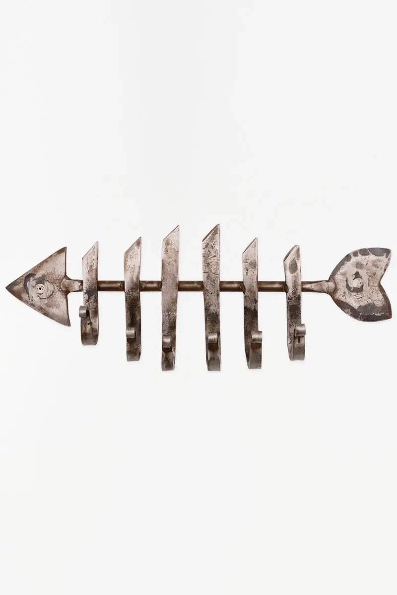 Perchero de metal con forma de pez y seis colgadores. Dimensiones: l: 31 cm – h: 12 cm.