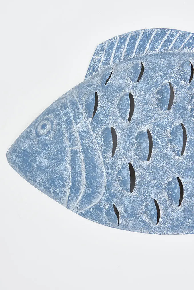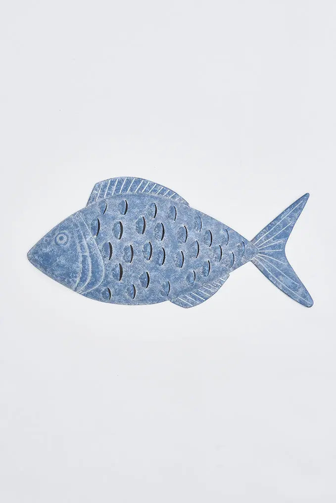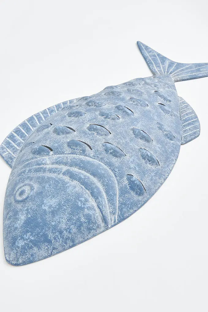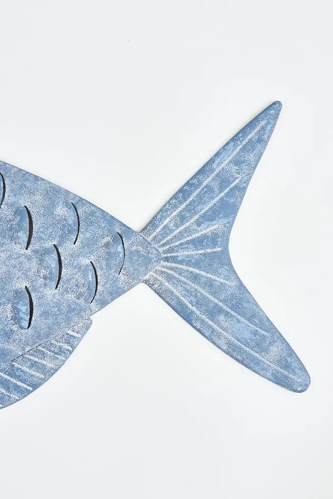 Pez decorativo de hojalata para pared: elegancia sostenible pez decorativo fabricado en metal. ¡dale un toque playero a tus paredes con nuestro pez decorativo de hojalata! Ideal para colgar, es el complemento perfecto para un estilo marinero en tu espacio. Detalles cuidados y estilo relajado en una pieza única. Dimensiones: l: 60 cm – w: 4 cm – h: 30 cm.