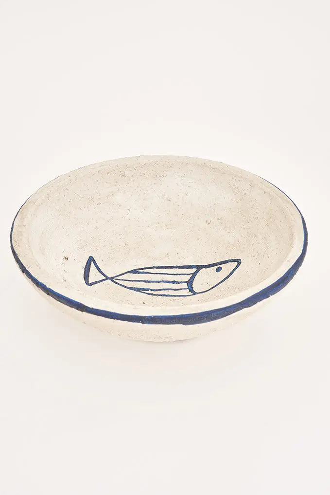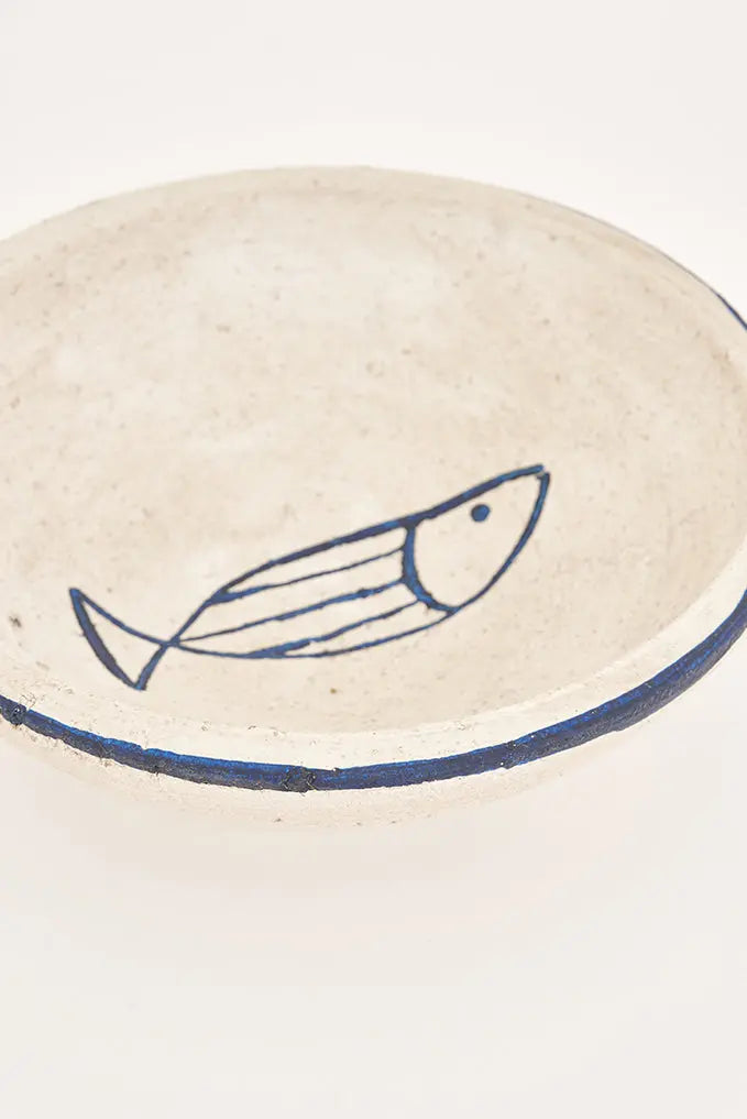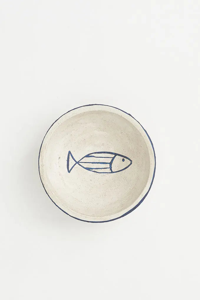 Plato hondo pequeño con pez dibujado: estilo único en terracota dale un toque único a tu mesa con nuestro plato hondo pequeño de terracota, que presenta un encantador diseño de pez. La terracota le agrega un toque rústico y auténtico, mientras que el detalle del pez añade un toque marino distintivo. Dimensiones: h: 7,5 cm – ø: 23 cm.