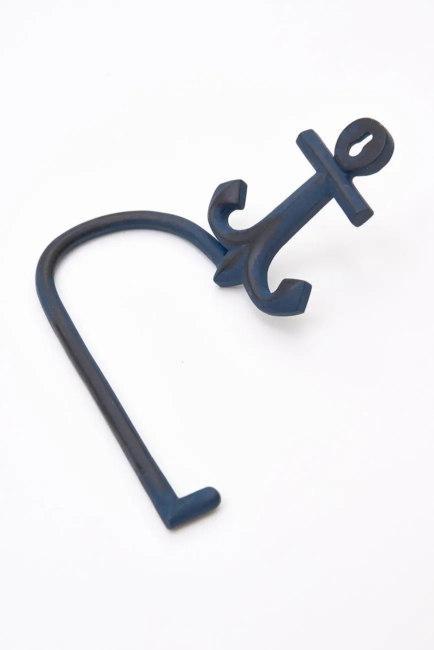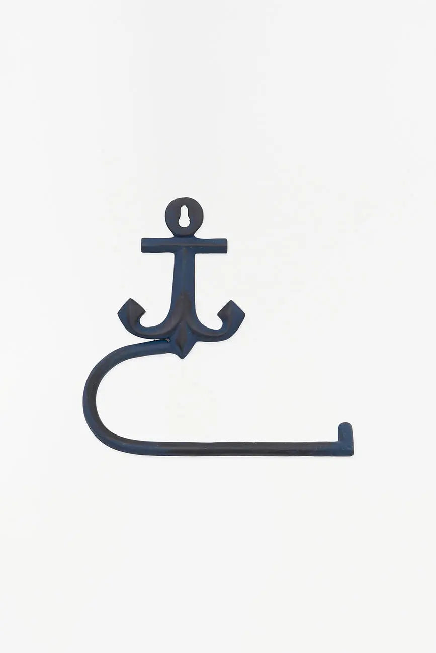 Portapapel higiénico de metal con forma de ancla. Accesorio diferente y original para la casa que combina un diseño diferente con el sentido práctico que se agradece en el hogar. Todo ello aportando un toque marinero que lo convierte en objeto ideal para los amantes de lo marino. Dimensiones: l: 15 cm – w: 5,5 cm – h: 15 cm.