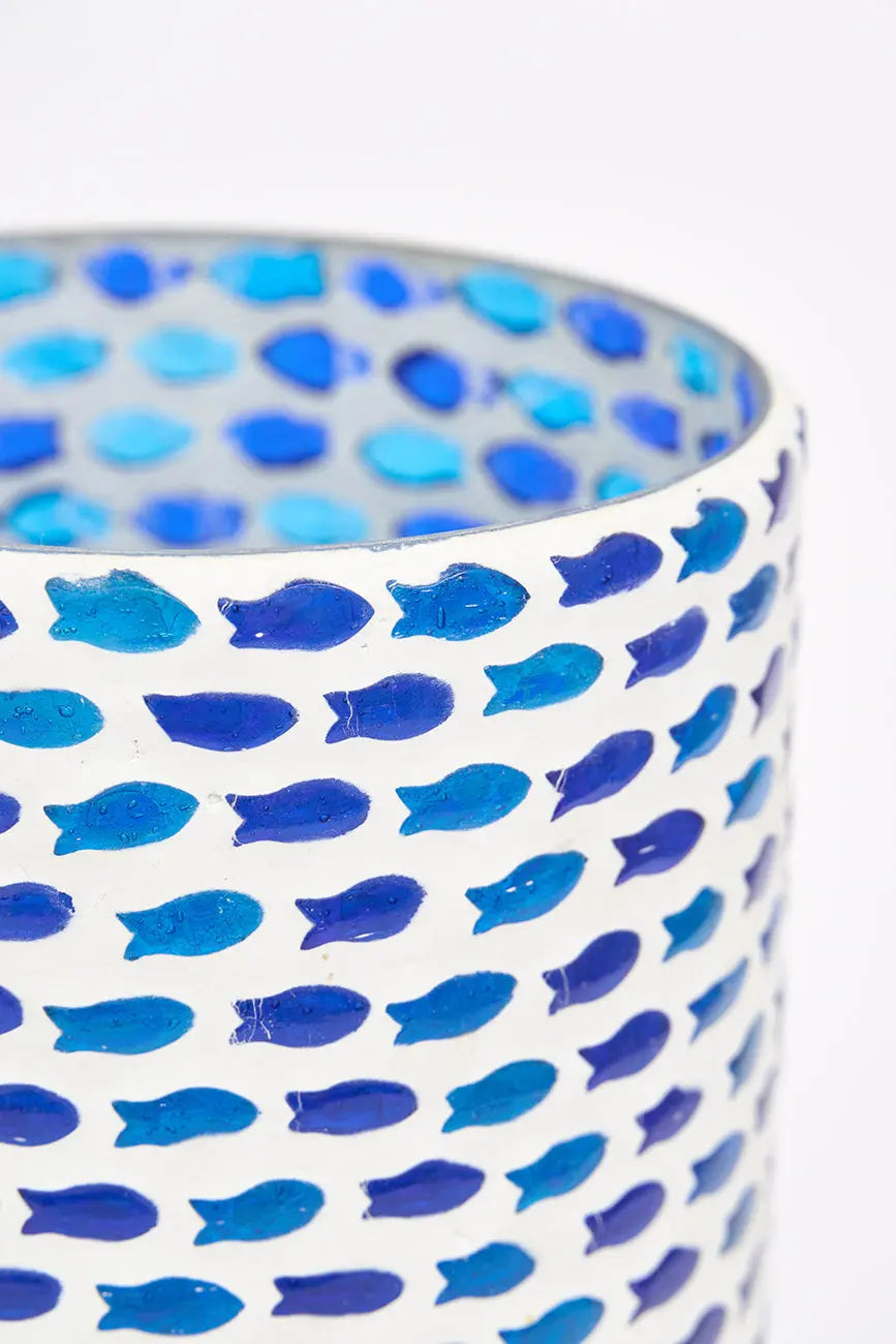 Este portavelas grande de cristal, adornado con un cautivador diseño de peces, es la adición ideal para crear una atmósfera acogedora y marinera en cualquier espacio. Dimensiones: h: 15,5 cm – ø: 13 cm.