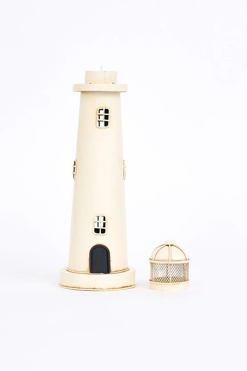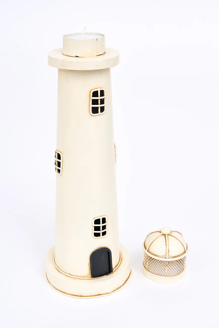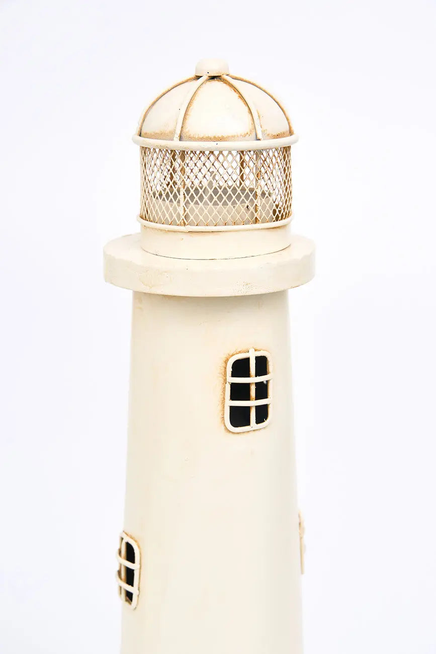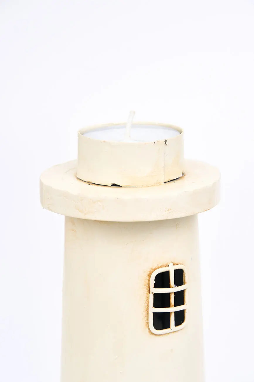 Estilizado portavelas de metal envejecido de color blanco este portavelas de metal estilizado, con un elegante acabado envejecido en color blanco, aporta un toque sofisticado y clásico a cualquier espacio. Su diseño simple y refinado, combinado con la pátina envejecida, evoca una sensación de calma y frescura. Perfecto para iluminar estanterías, mesas o rincones. Dimensiones: h: 33,5 cm – ø: 10 cm.
