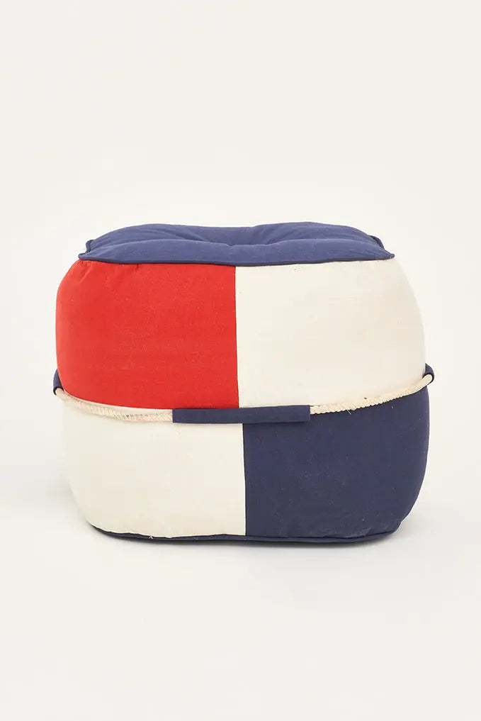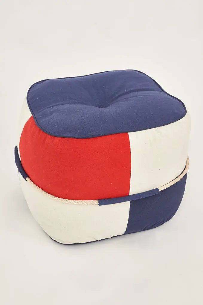 Puf náutico en algodón y cuerda: estilo fresco y marinero renueva tu espacio con nuestro puf náutico, confeccionado en algodón y cuerda. Su vibrante diseño a cuadros en colores azul, blanco y rojo le da un estilo fresco y marinero. Este puf no solo es una adición funcional, sino también un elemento decorativo que aportará un toque de vitalidad a tu sala de estar o cualquier rincón de tu hogar. Dimensiones: l: 45 cm – h: 40 cm.