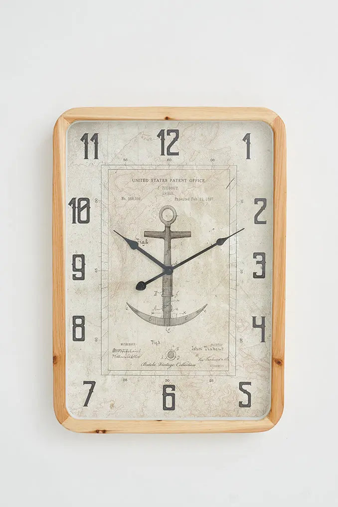 Reloj vintage de pared con ancla grabada: estilo náutico y distinción haz una declaración de estilo náutico con nuestro reloj vintage, que presenta un grabado detallado de una ancla. El marco de madera y el cristal que protege el reloj aportan un toque de distinción a cualquier espacio. Este reloj no solo es funcional, sino que también sirve como una pieza decorativa que evoca la elegancia del pasado y el encanto del mar. Dimensiones: l: 43 cm – h: 60 cm.