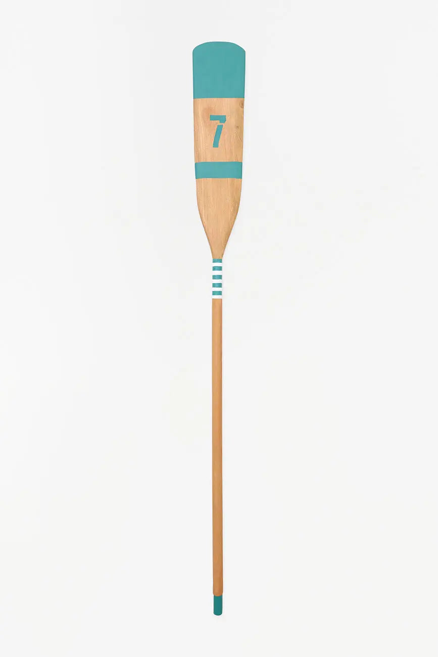 Remo de madera en color natural combinado con un verde marino. Viene con dos cuerdas que permiten colgarlo en la pared aportando un toque náutico diferente al hogar. Dimensiones: l: 145 cm.