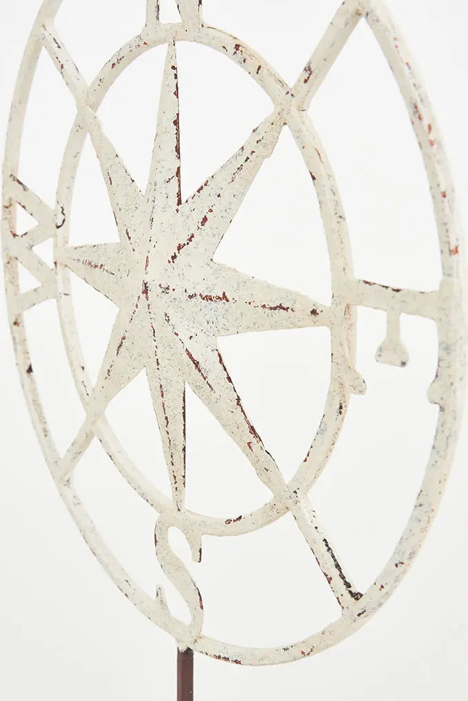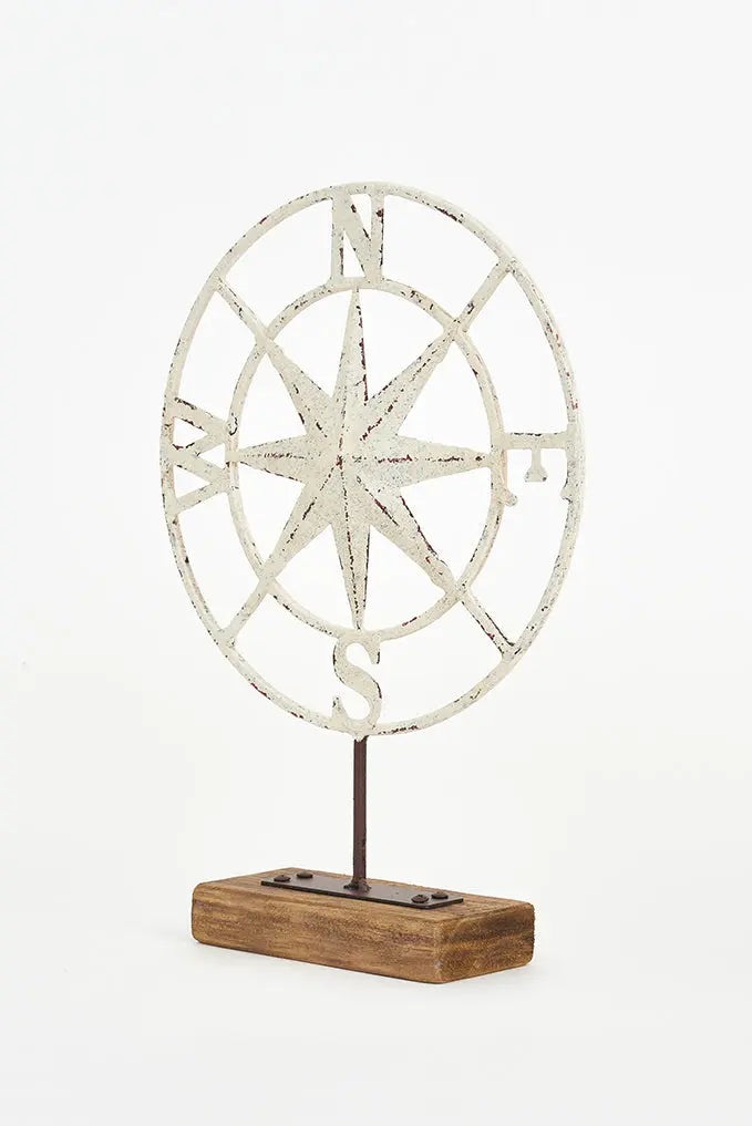 Rosa de los vientos metálica encuentra tu camino con nuestra rosa de los vientos en metal, montada sobre una elegante base. Esta pieza no solo es un indicador de dirección, sino también un acento decorativo con un toque náutico. Ideal para aquellos que buscan un regalo funcional y con estilo. Dimensiones: l: 25 cm – h: 35,5 cm.